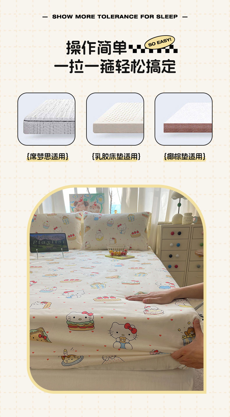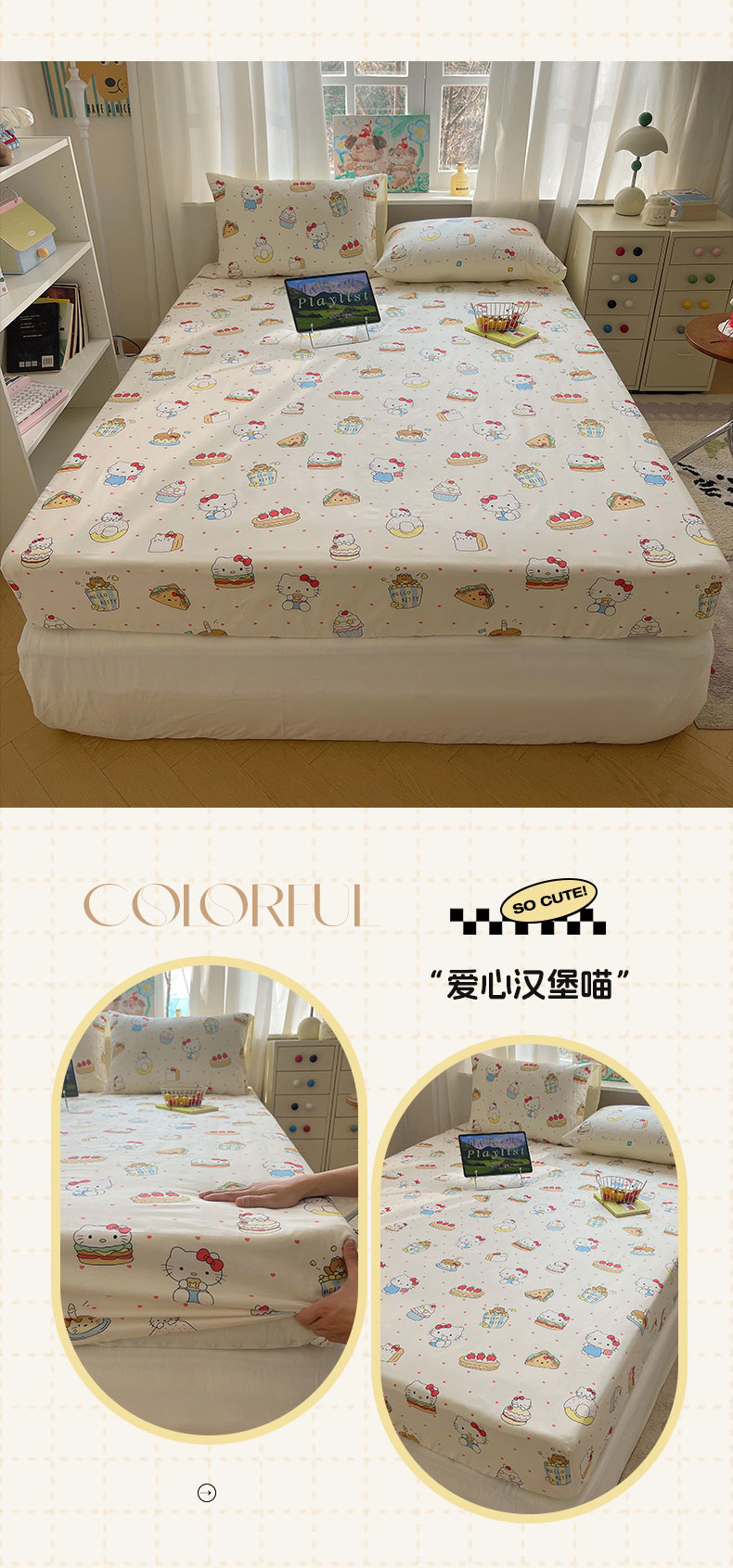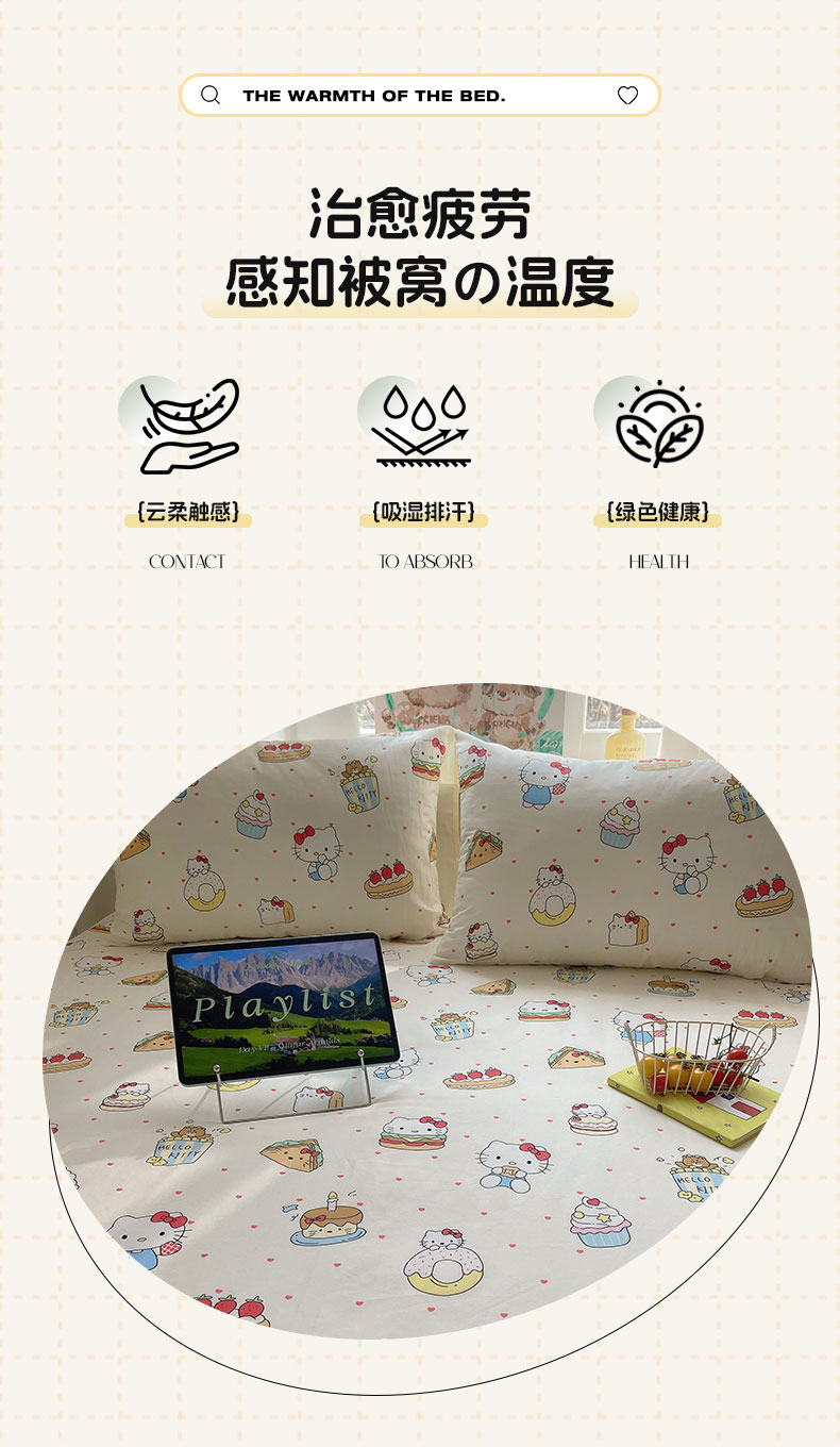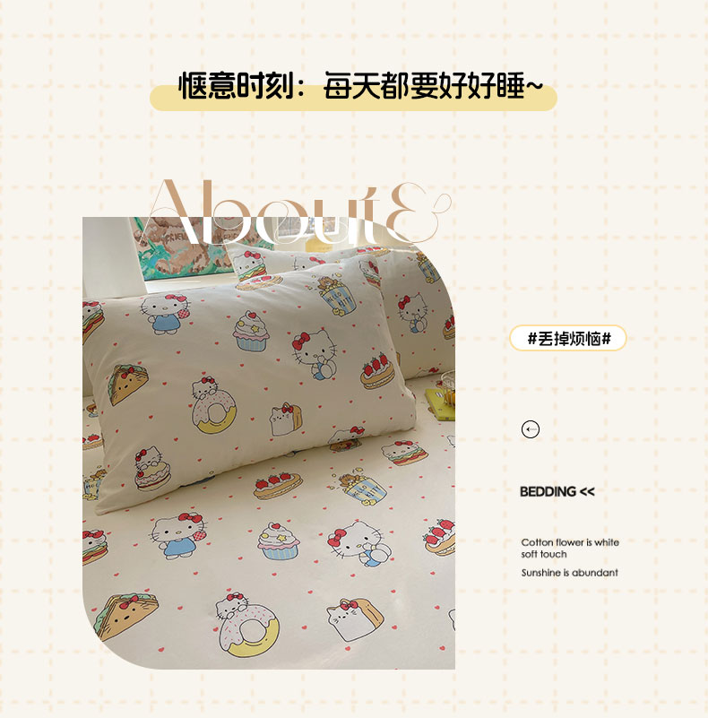 商品名称:六巷胡同 2026新款40支全棉13070INS卡通单品床笠 爱心汉堡喵
