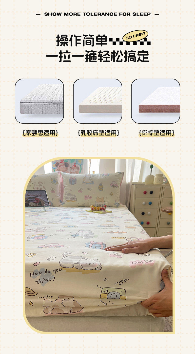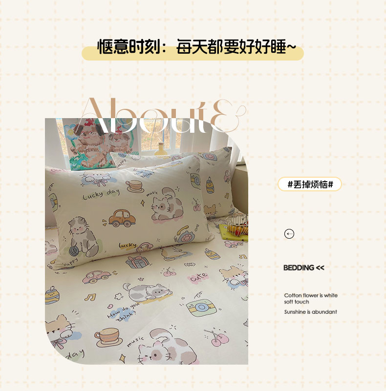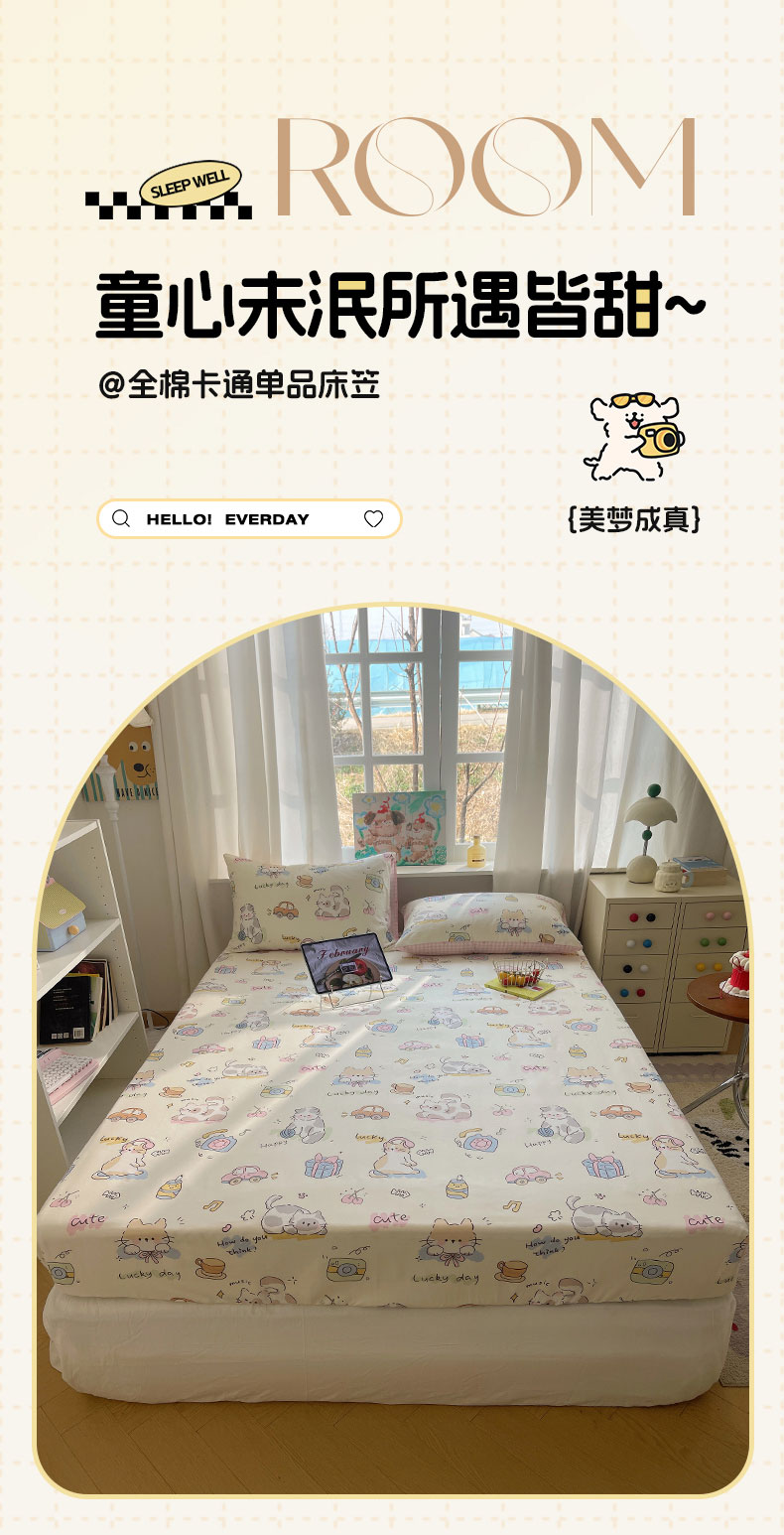 商品名称:六巷胡同 2026新款40支全棉13070INS卡通单品床笠 猫咪聚会趴