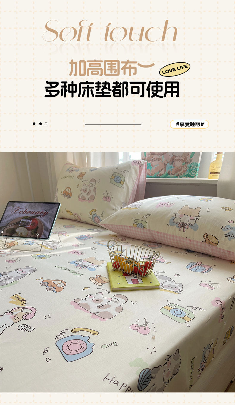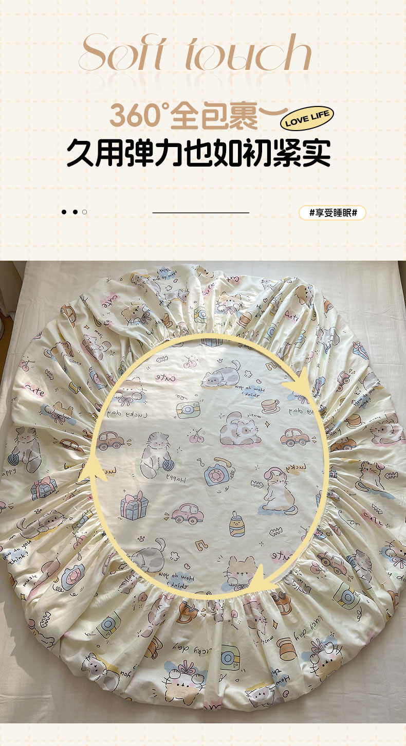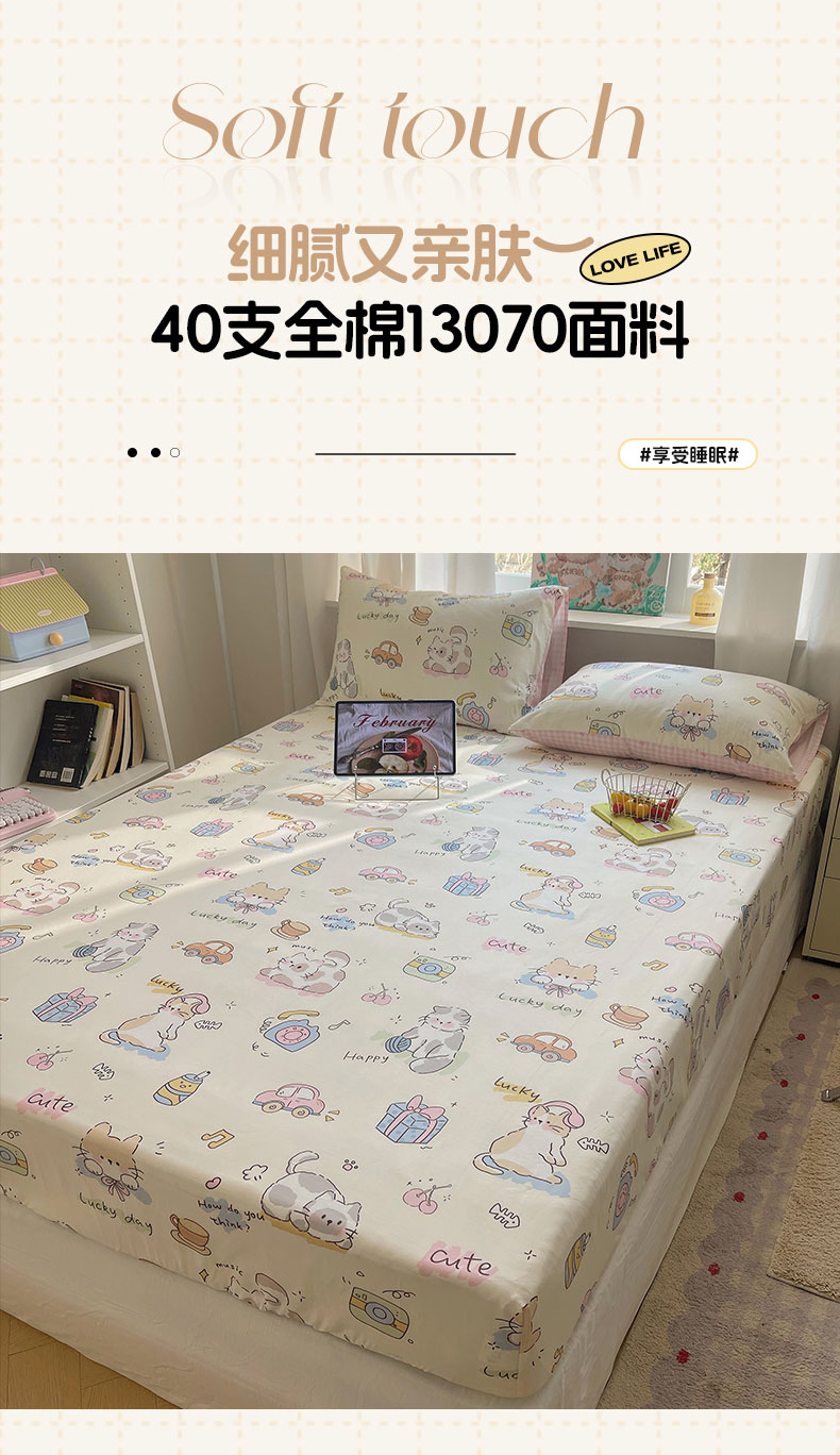 六巷胡同 2026新款40支全棉13070INS卡通单品床笠 猫咪聚会趴