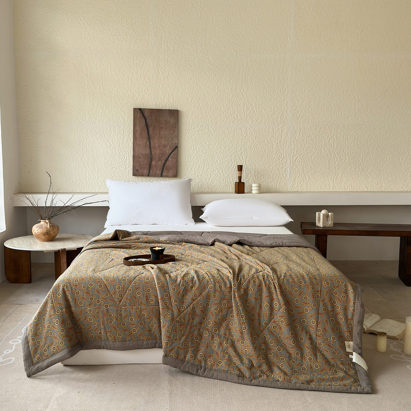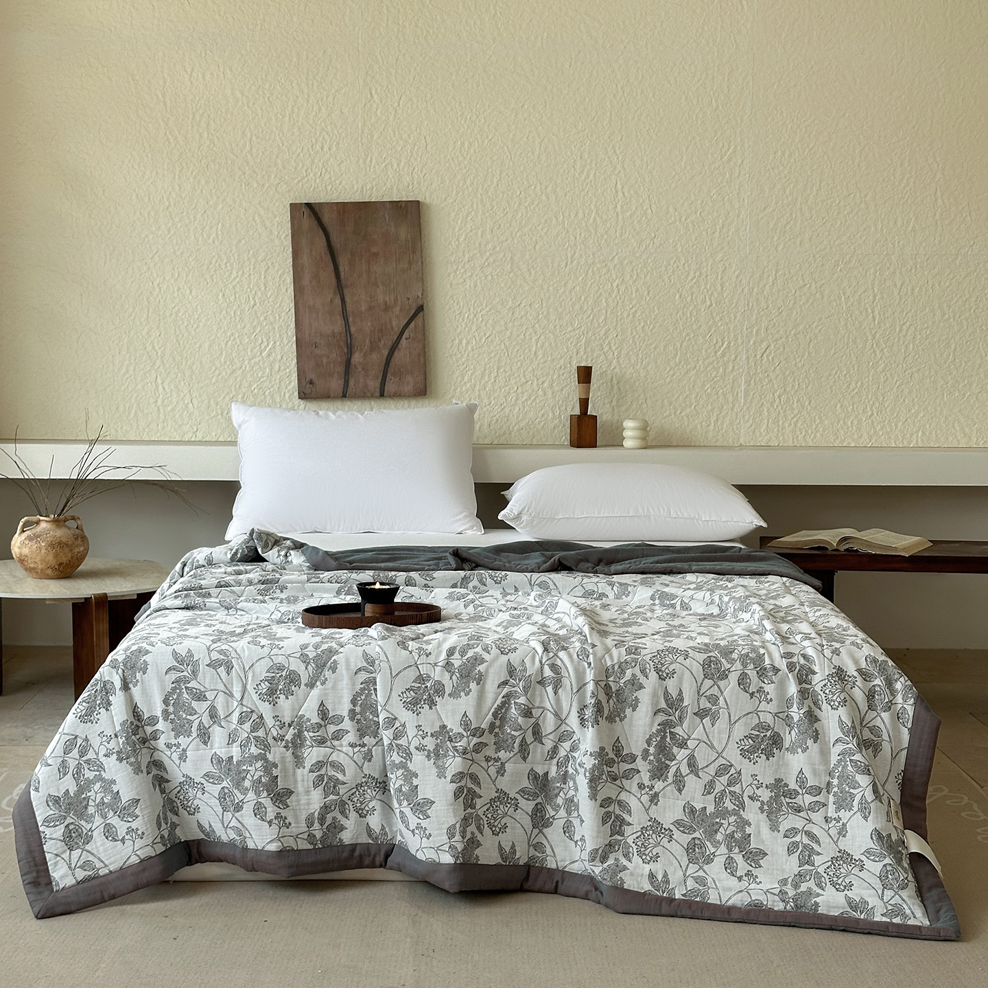 (总)摩时 2026新款全棉色织双层纱夏被夏凉被空调被,千枝万朵,岁月如歌,甜梦时光