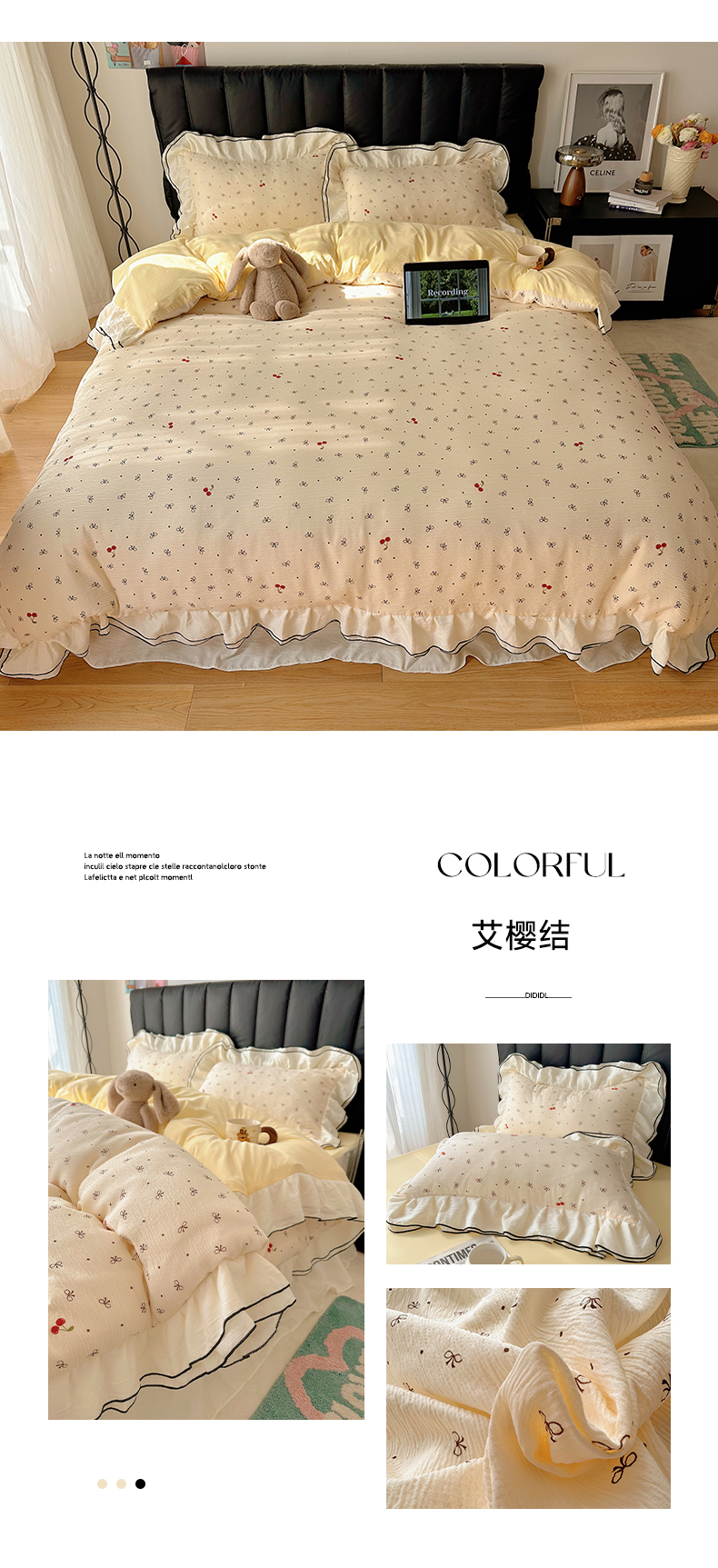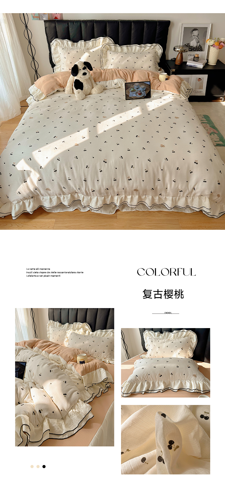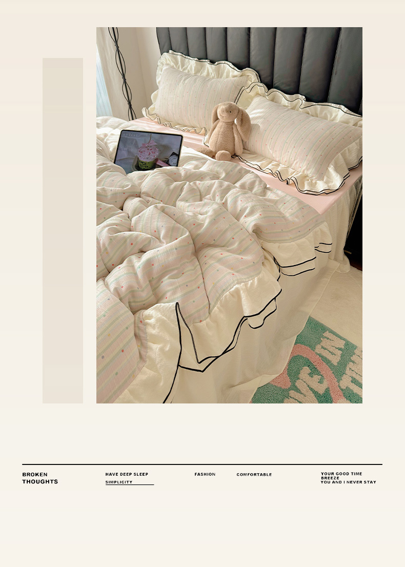 当前位置: 91家纺网 > 商品网购 > 床品套件 > 四件套 > 其它四件套 > 韩都家居 2026春夏新款双层纱皱皱纱韩系清新风四件套 复古狗