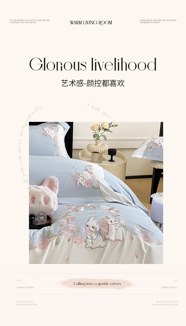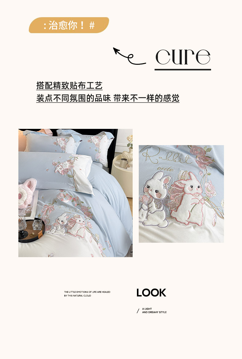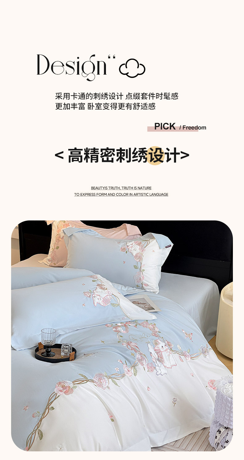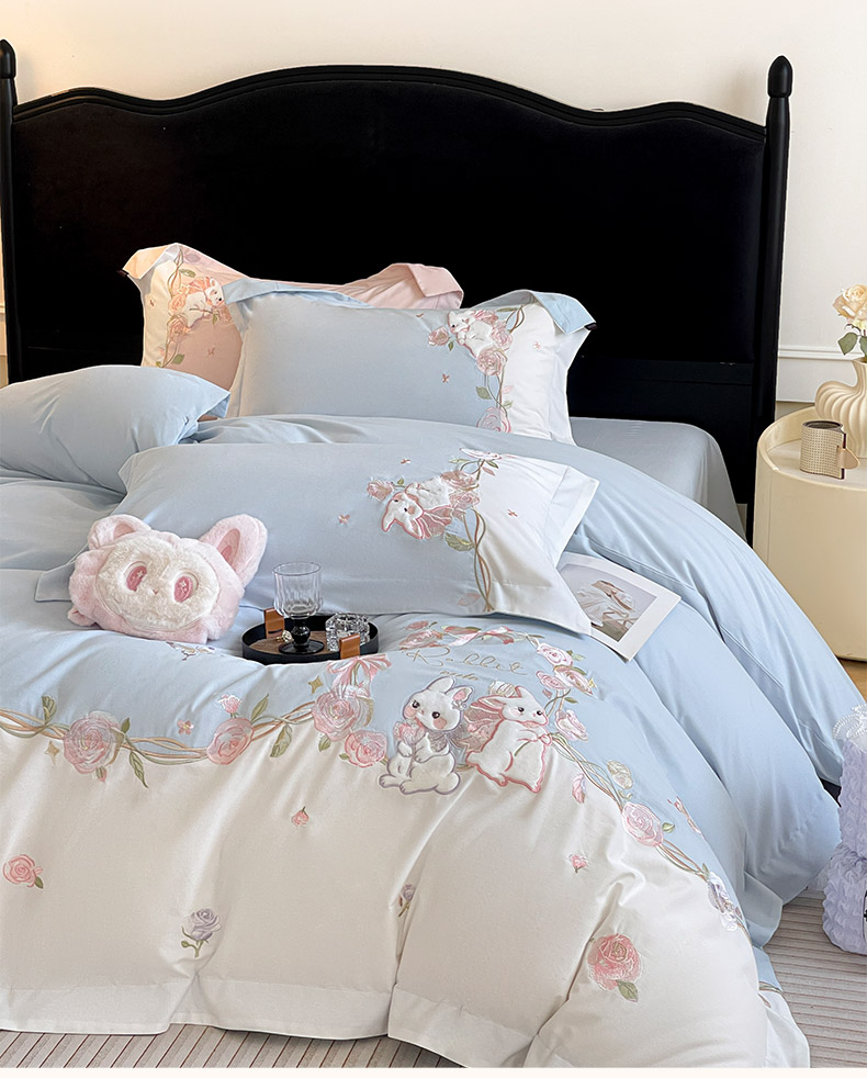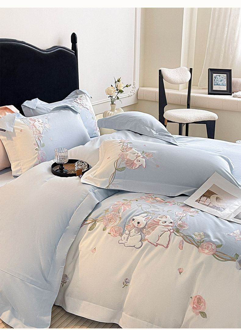 当前位置: 91家纺网 > 商品网购 > 床品套件 > 四件套 > 全棉普通四件套 > (总)爱妮菲家纺 2026爆款新品少女心A类100支长绒棉纯棉四件套全棉刺绣兔子被套床单床笠公主风
