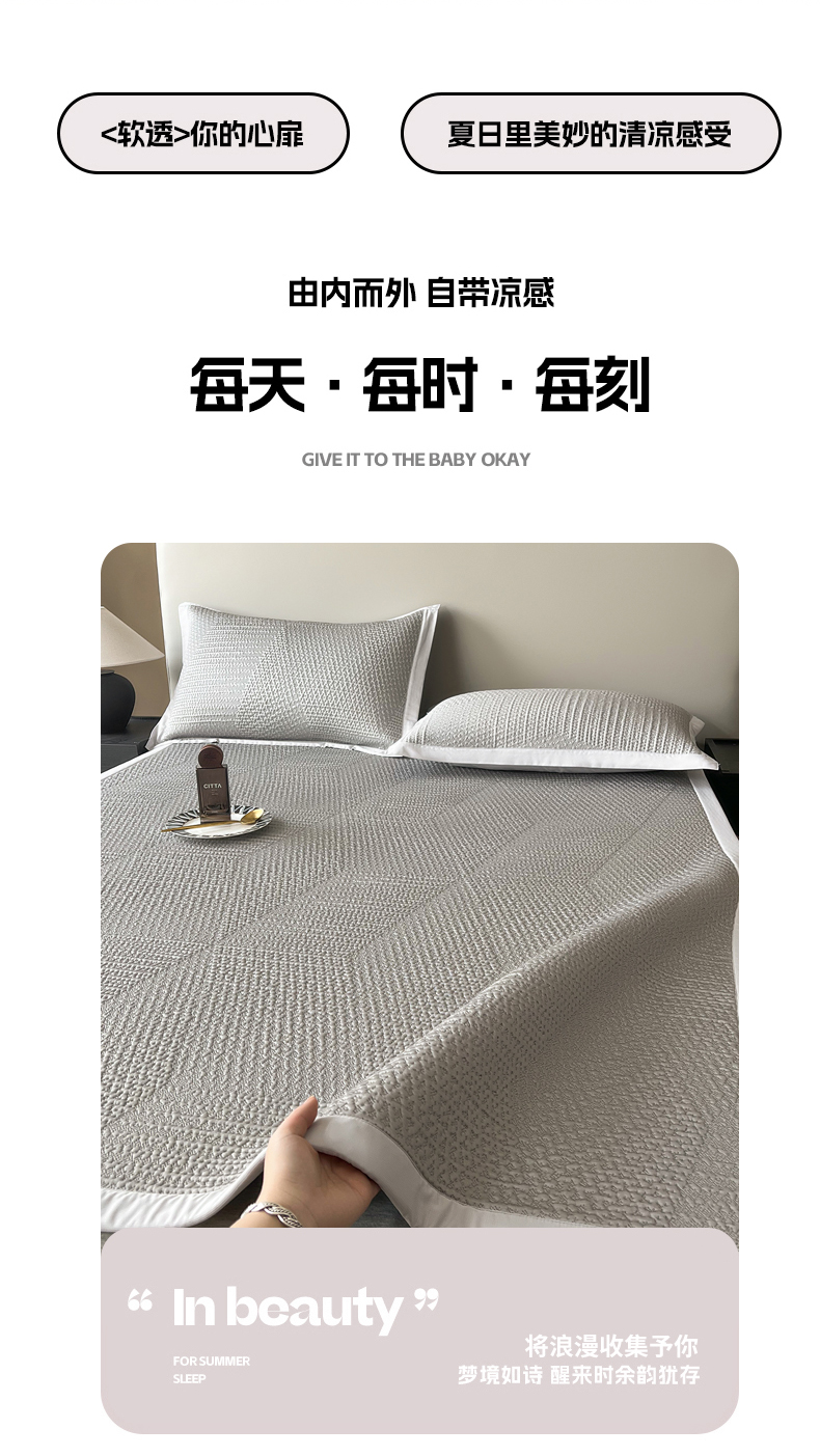 商品名称:(总)禧禾 2026新款PE中分子A类泡小豆暗纹提花凉席席子三件套-星涧