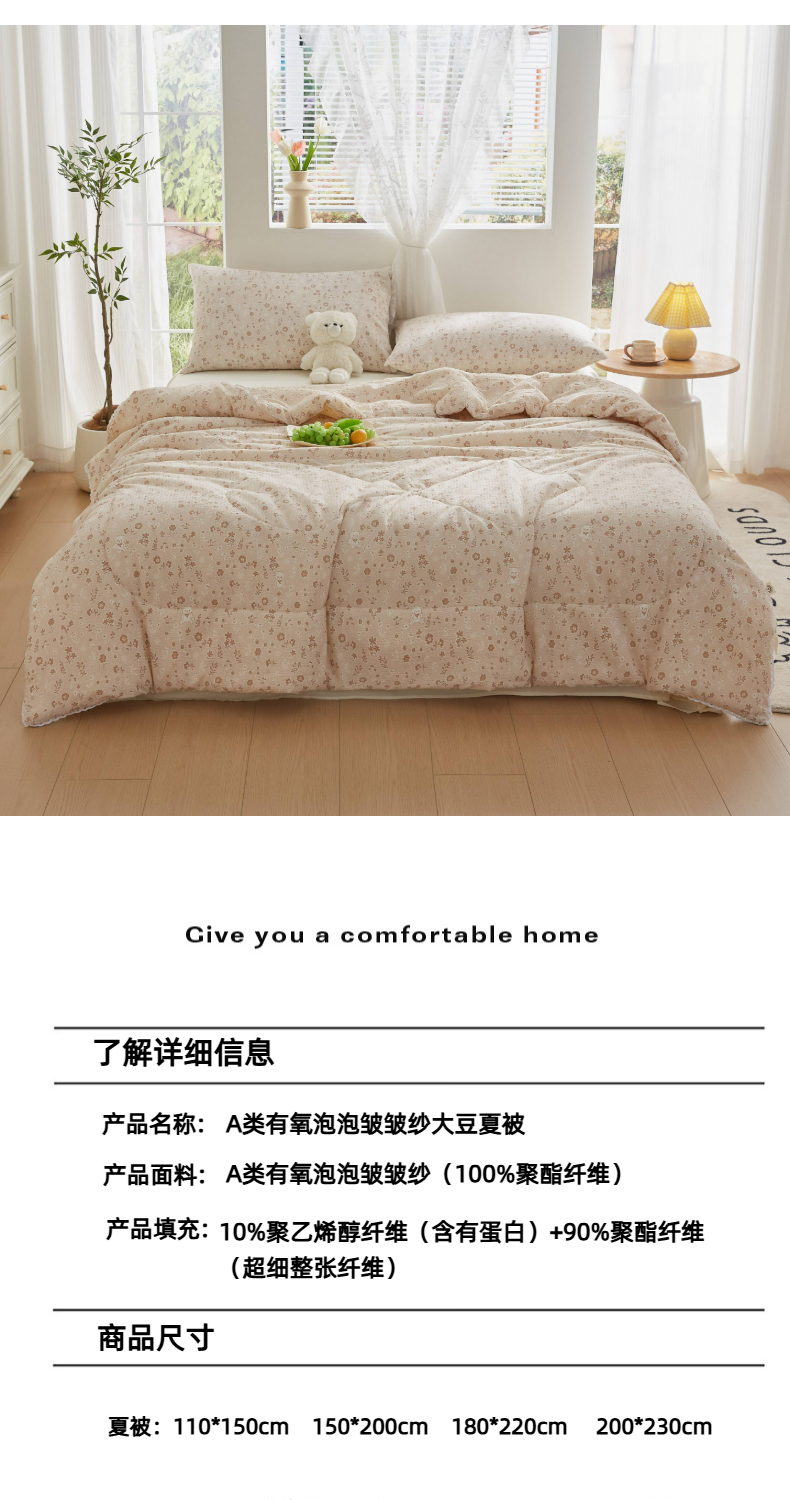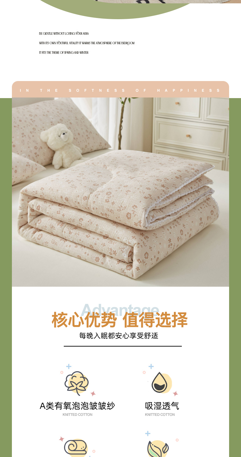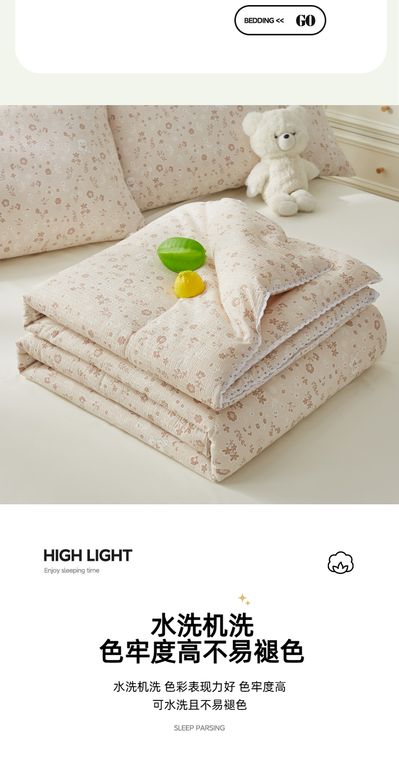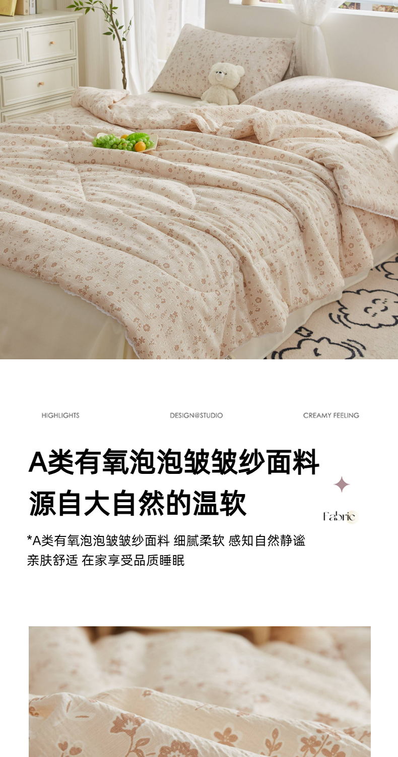 商品名称:帕芬鸟家纺 2026春夏新款双层皱皱纱水洗棉大豆夏被夏凉被空调被 花间小熊