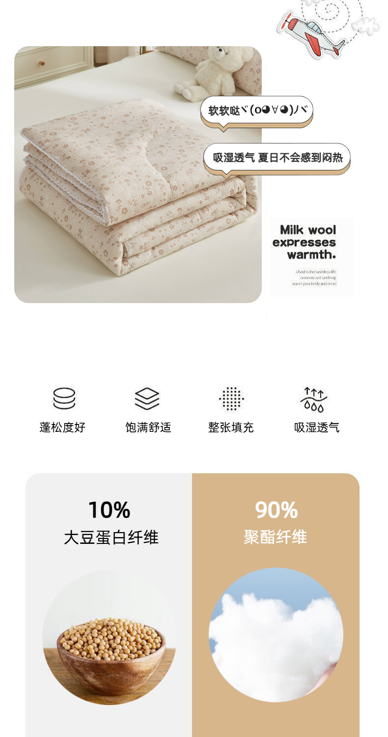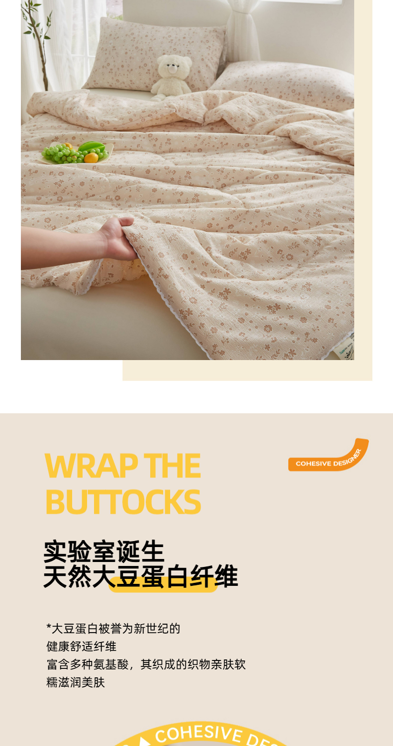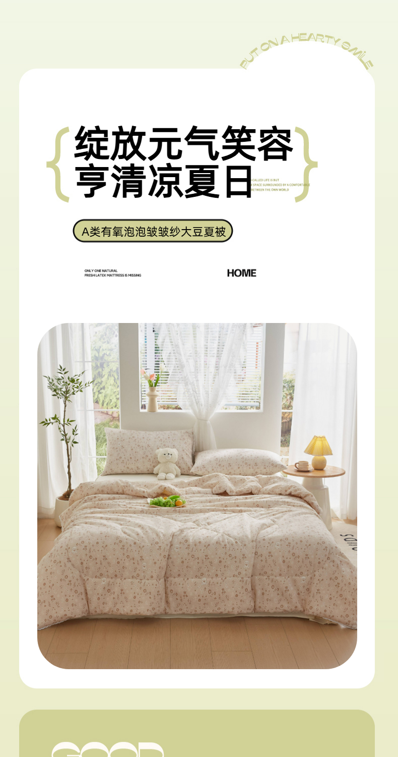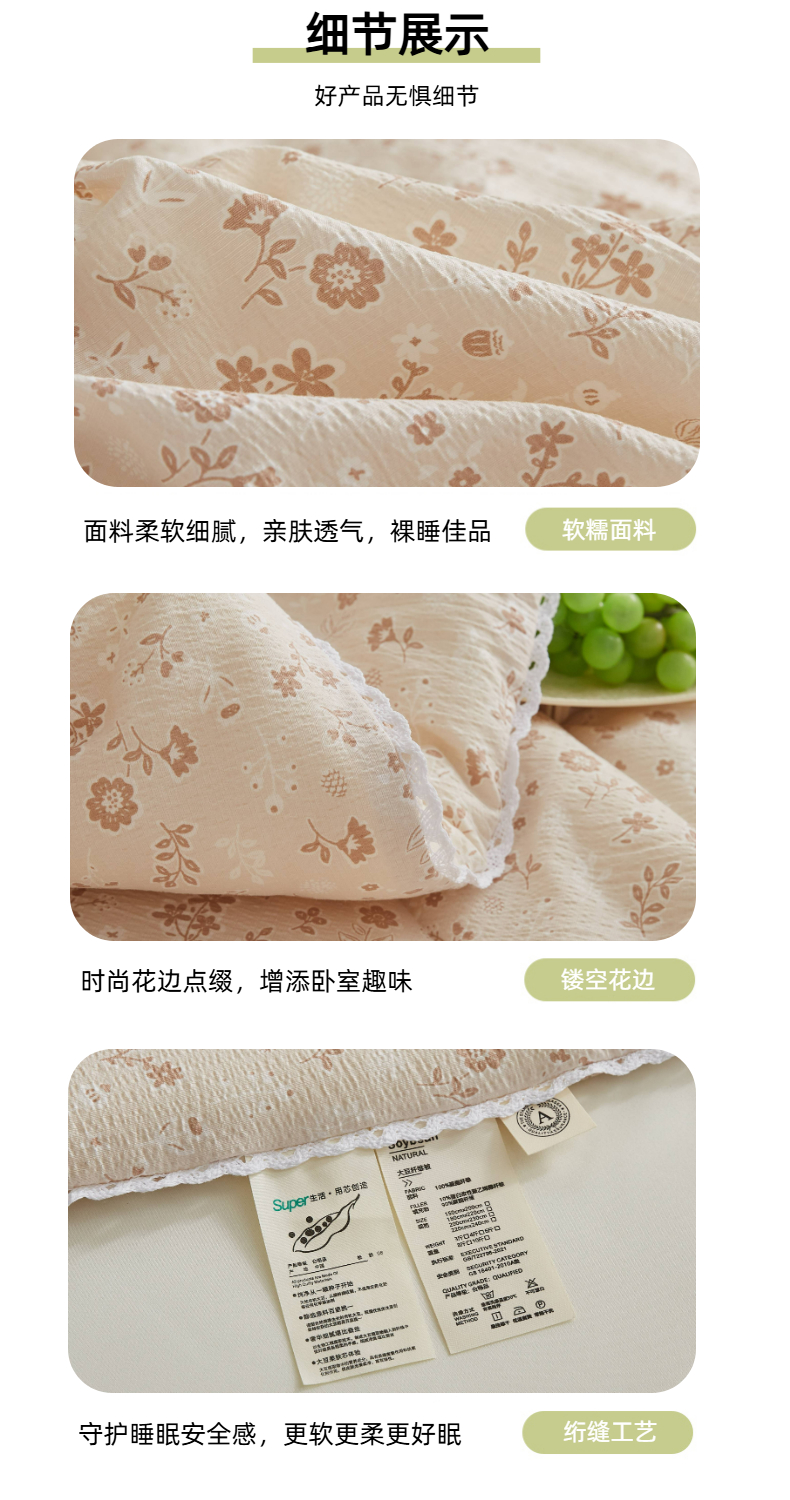 商品名称:帕芬鸟家纺 2026春夏新款双层皱皱纱水洗棉大豆夏被夏凉被空调被 花间小熊