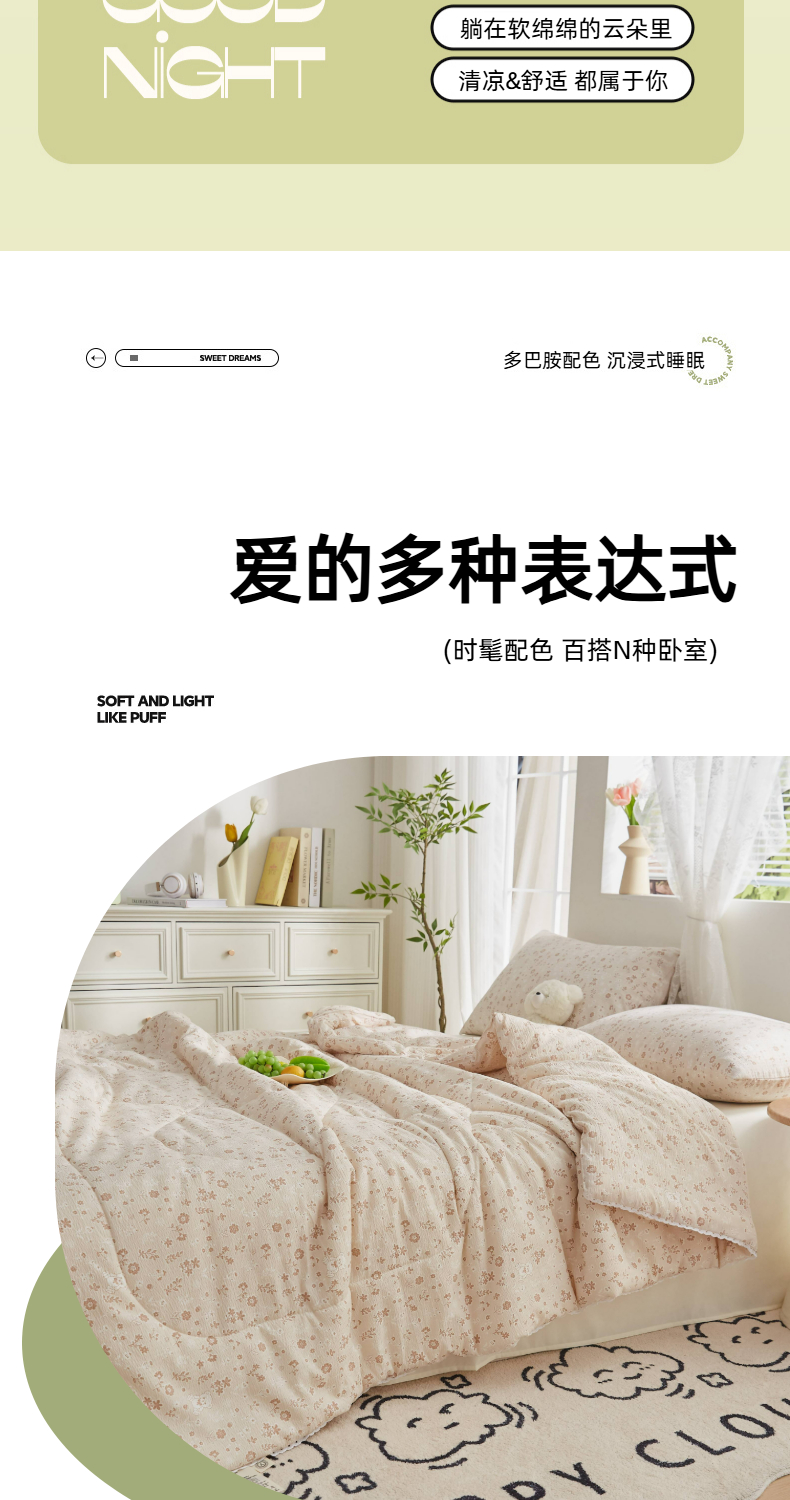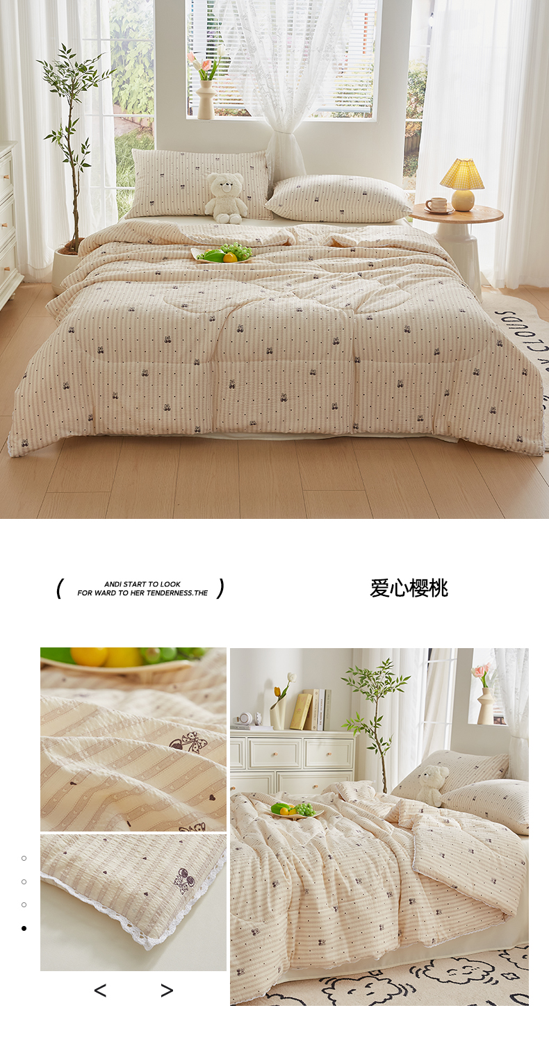 (总)帕芬鸟家纺 2026春夏新款双层皱皱纱水洗棉大豆夏被夏凉被空调被,爱心樱桃,花海,花间蜜语,花间小熊,花漾,恐龙谷,莓果森林,森林兔,晚安熊,小确幸