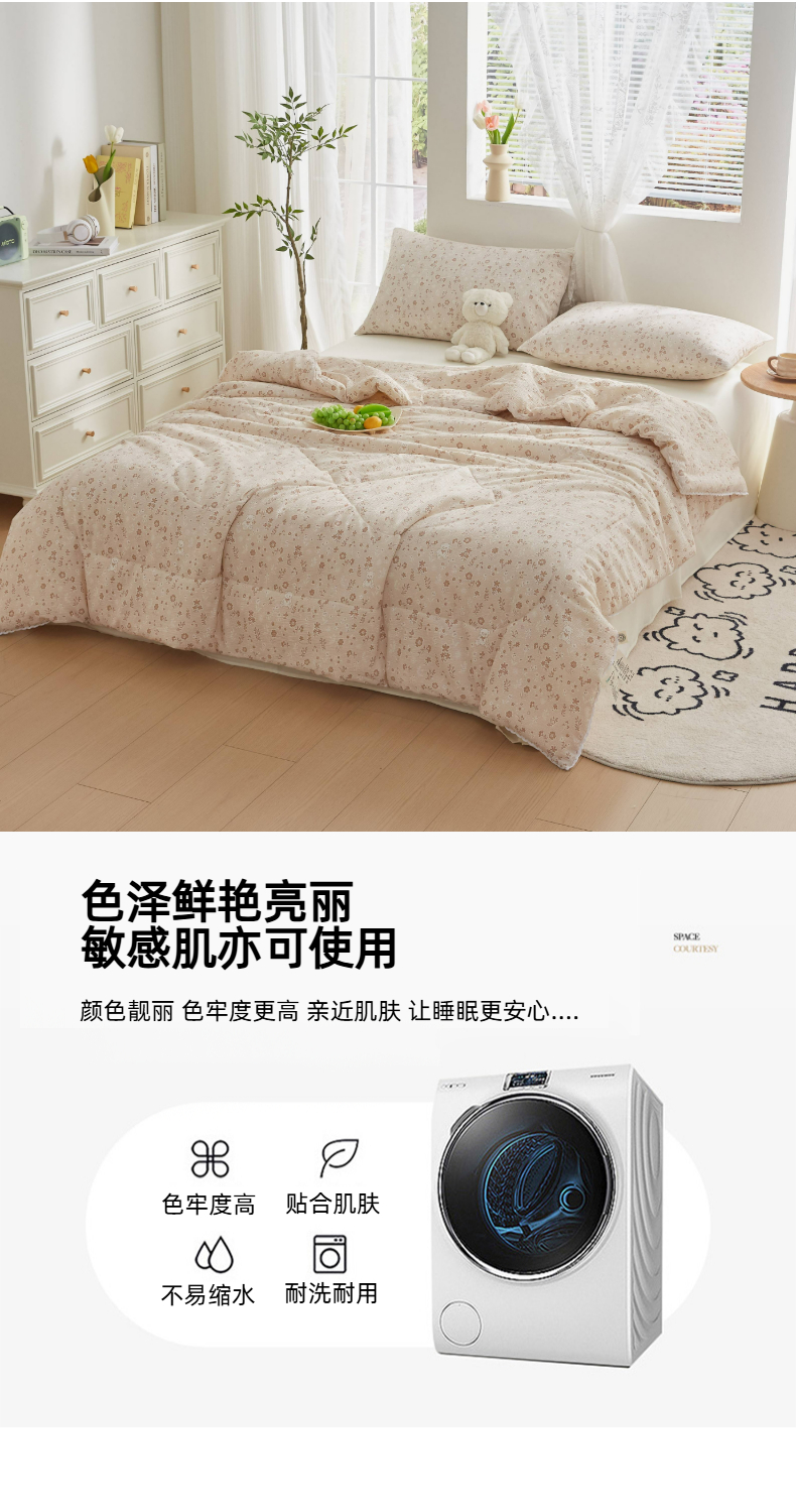 (总)帕芬鸟家纺 2025新款超柔水洗棉大豆被子被芯,米白拼绿,灰色,米白色,玉色,咖色