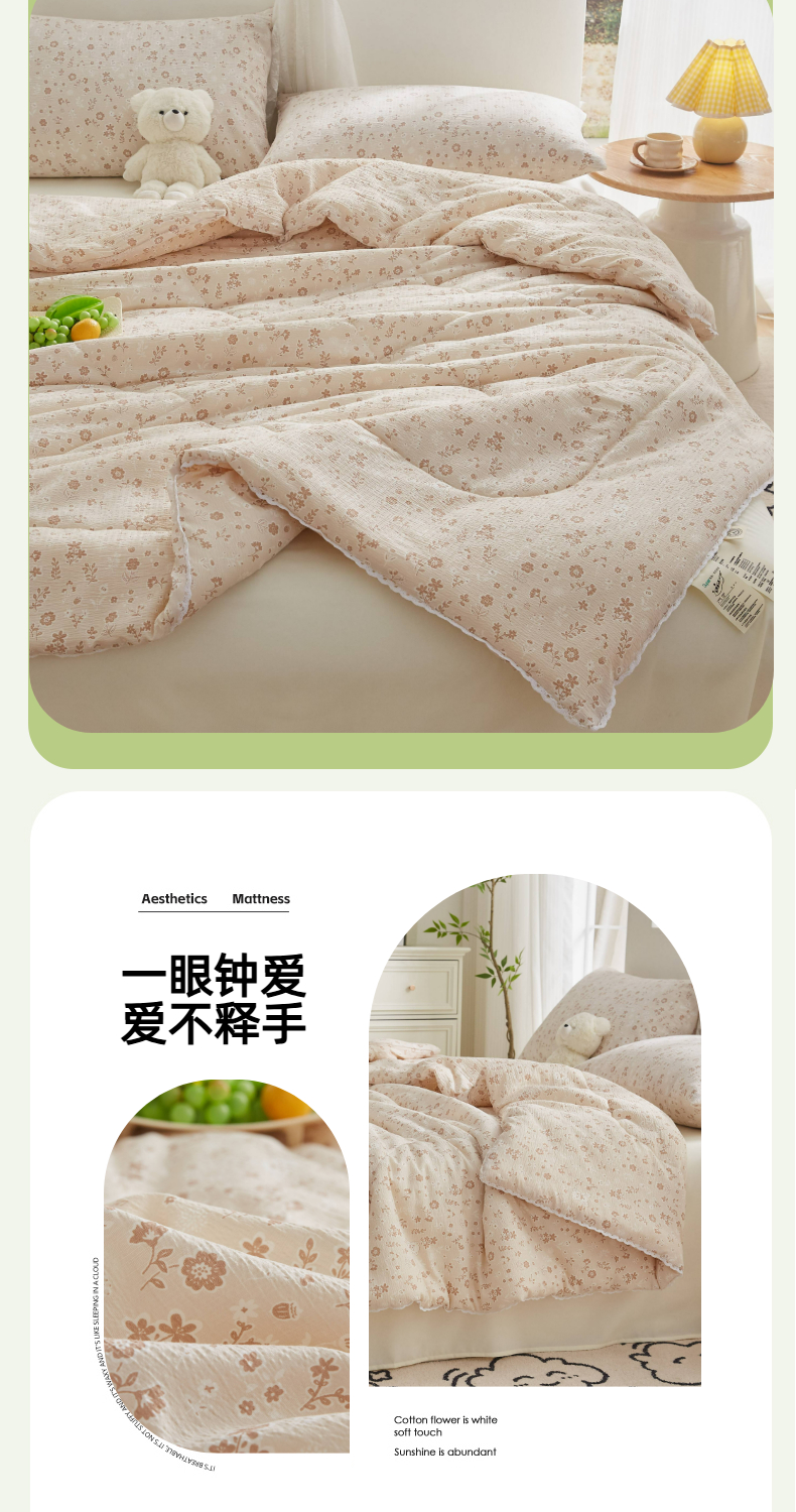 帕芬鸟家纺 2026春夏新款双层皱皱纱水洗棉大豆夏被夏凉被空调被 花间小熊