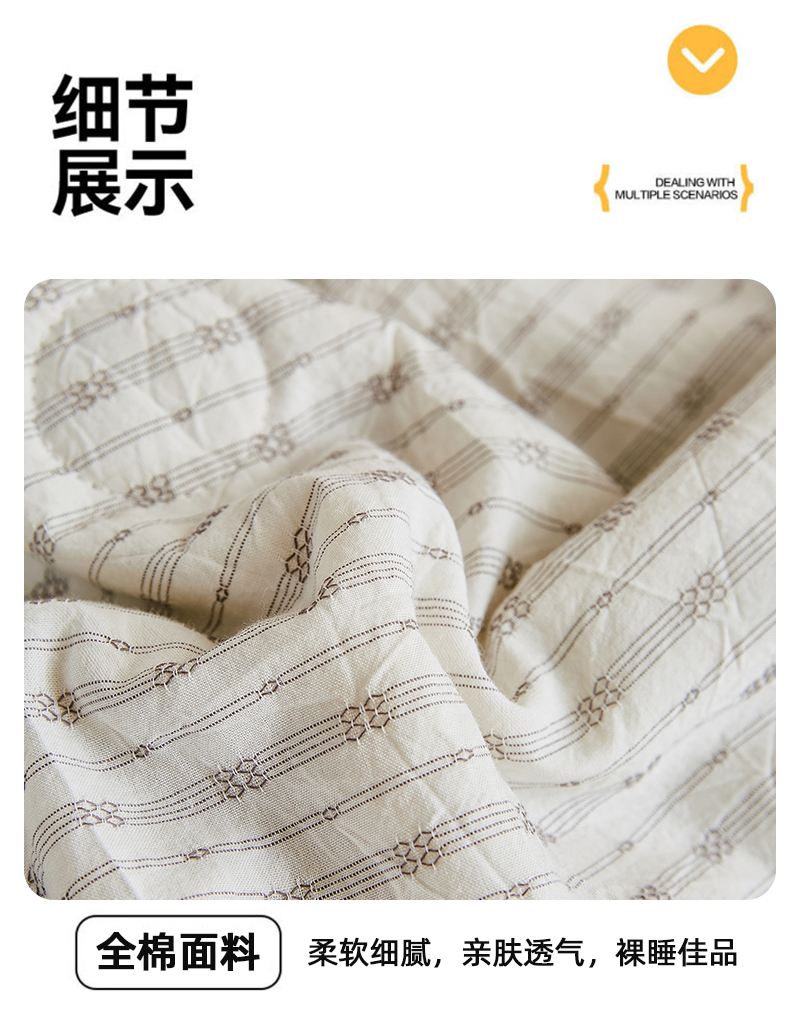 (总)鸣升家纺 2026新款A类全棉水洗棉条纹提花大豆纤维夏被四件套空调被,条纹提花粉,条纹提花灰,条纹提花蓝,条纹提花驼