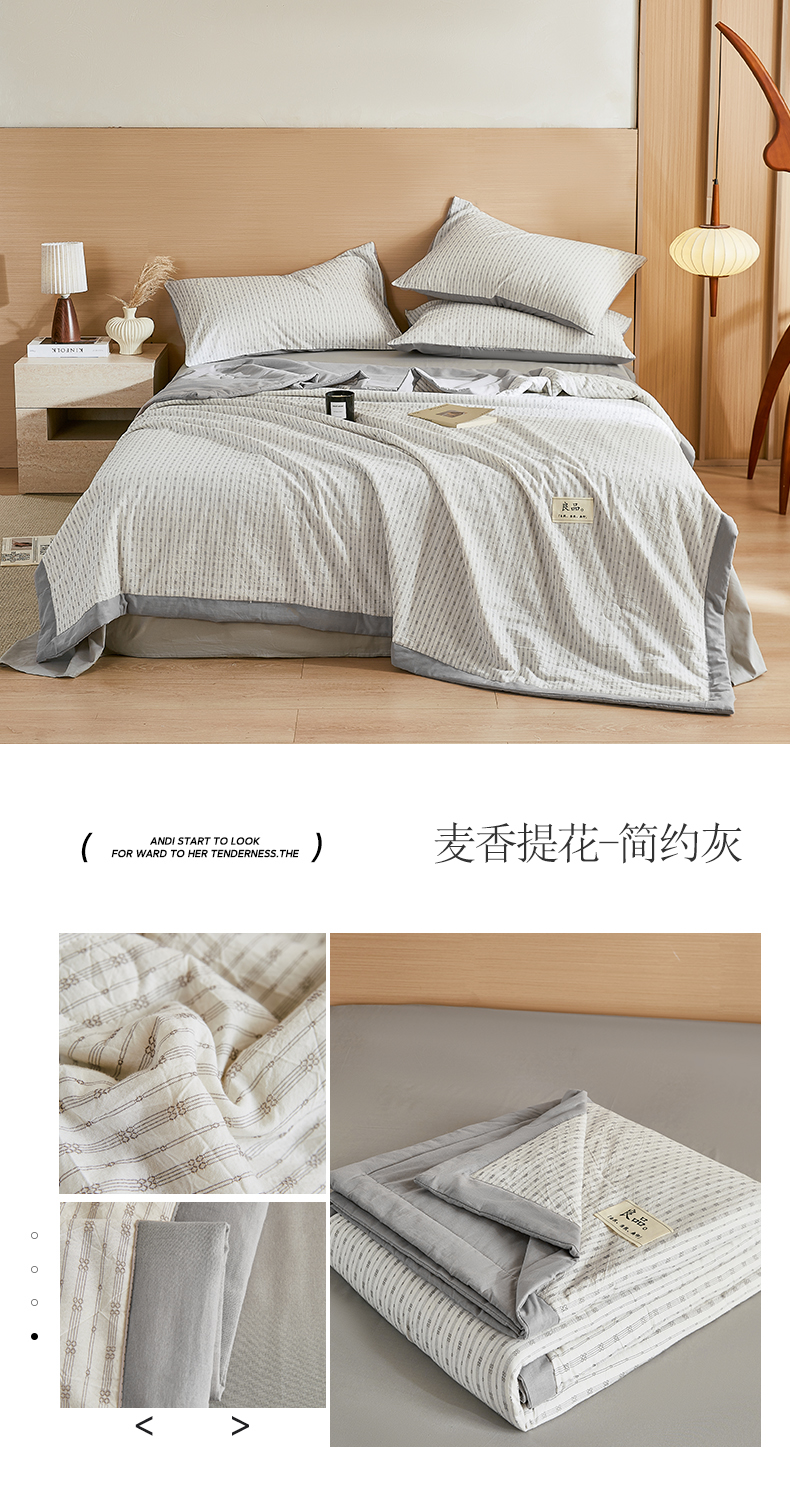 • 91家纺网 家纺一手货源 找家纺 鸣升家纺 2026新款全棉纯棉麦香提花系列大豆夏被夏凉被空调被 麦香提花简约灰
