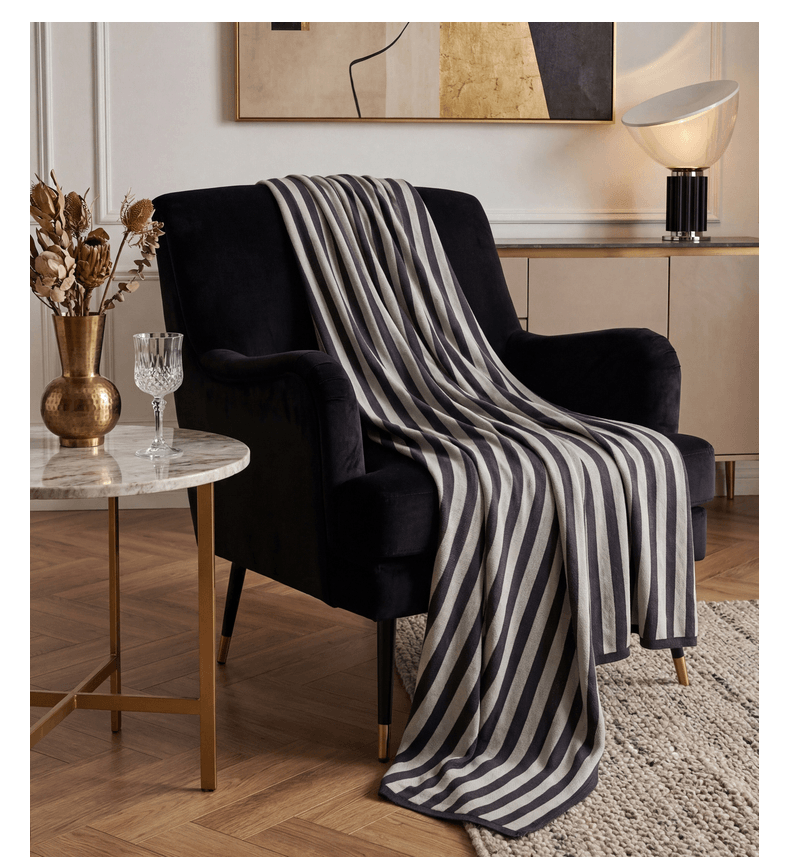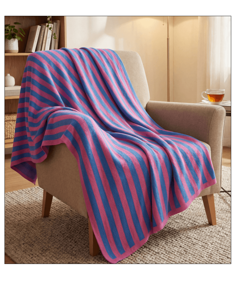(总)暖绵绵家纺 2026新款丝光棉撞色条纹盖毯-海文(本款券后/折后零售价不得低于162元)