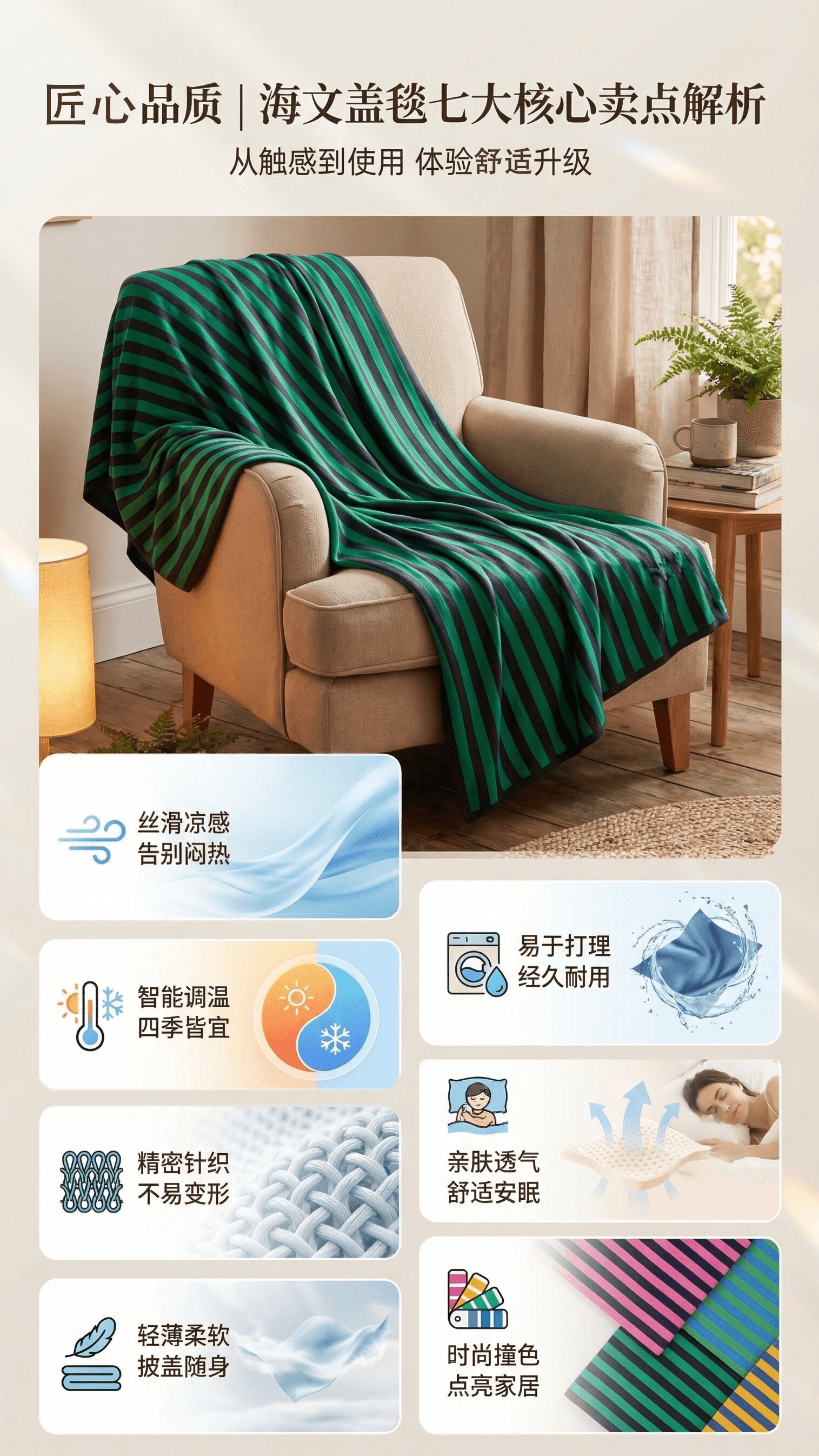 商品名称:(总)暖绵绵家纺 2026新款丝光棉撞色条纹盖毯-海文(本款券后/折后零售价不得低于162元)