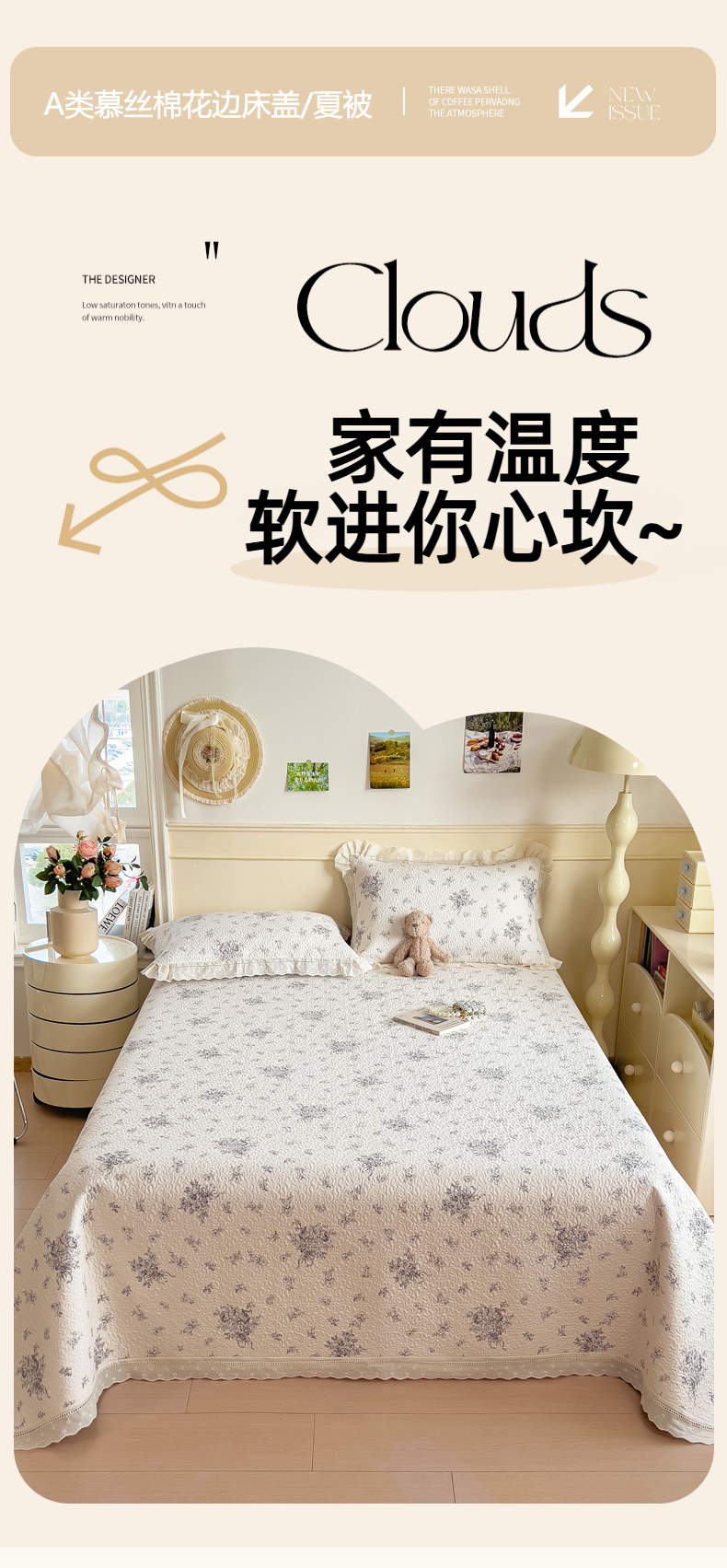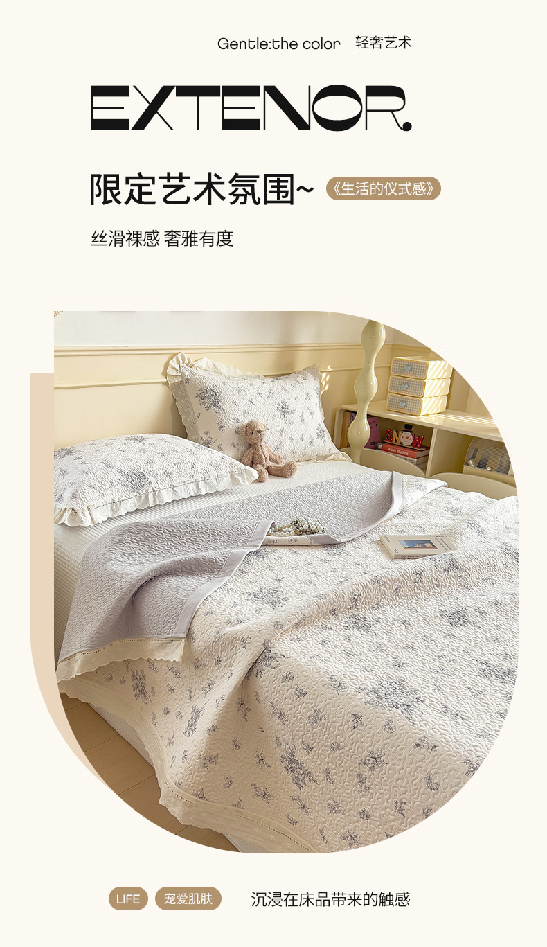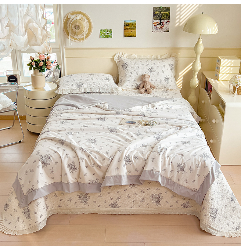 (总)慕木家纺 2026新款A类印花慕丝棉花边款床盖夏被系列(抽空压缩可供跨境)提供买家秀,莫兰迪+浅紫,洛可可+粉,蓝庭叙+灰,锦芙+驼,金兰+黄,凡尔赛+粉,蓝漪+蓝,洛雅+黛紫,墨芳+灰,清漫+绿,波点序章+驼,青妍+粉,星心兔语+粉,熊兔叙+蓝,云菇森林+浅紫,木马童谣+灰,蛋糕熊+绿,甜梦熊+浅粉