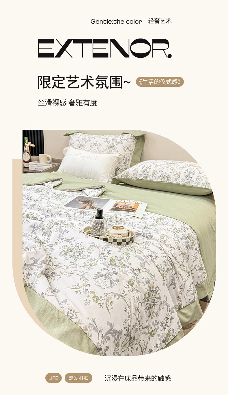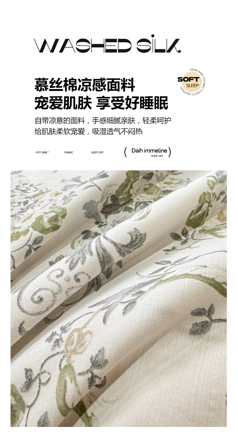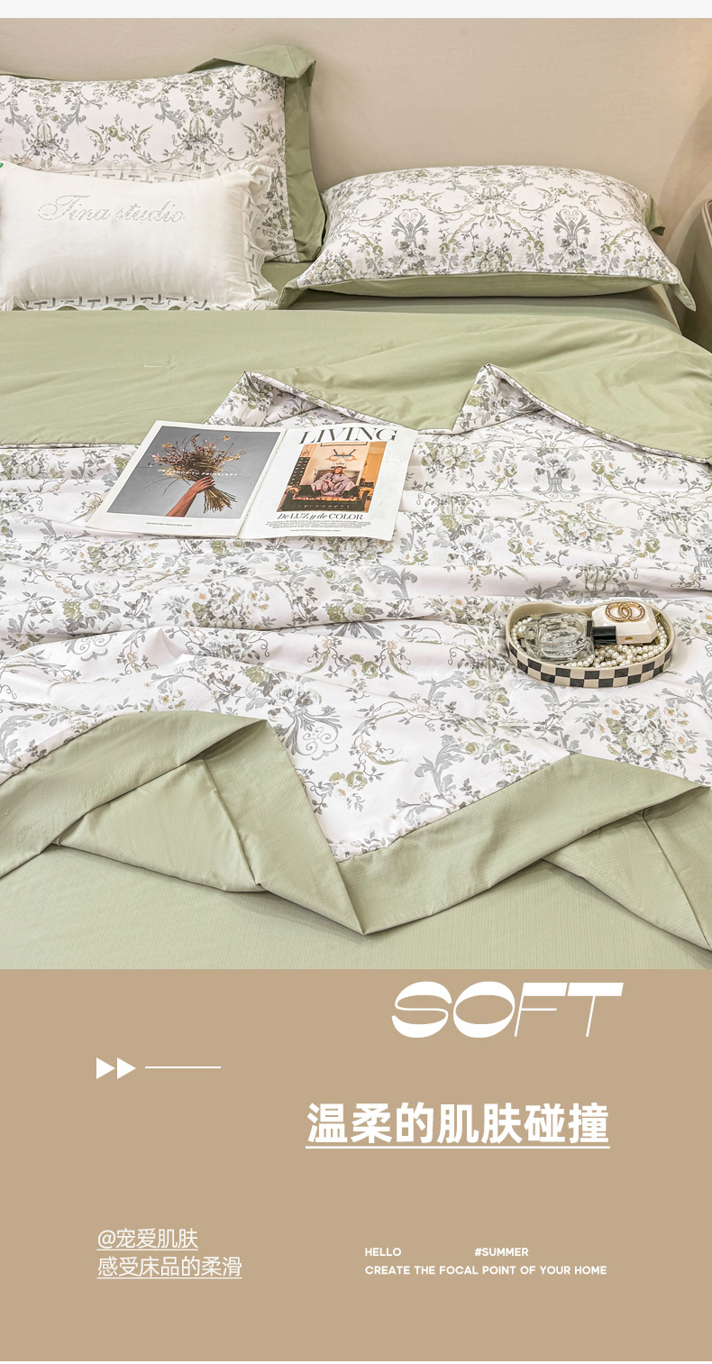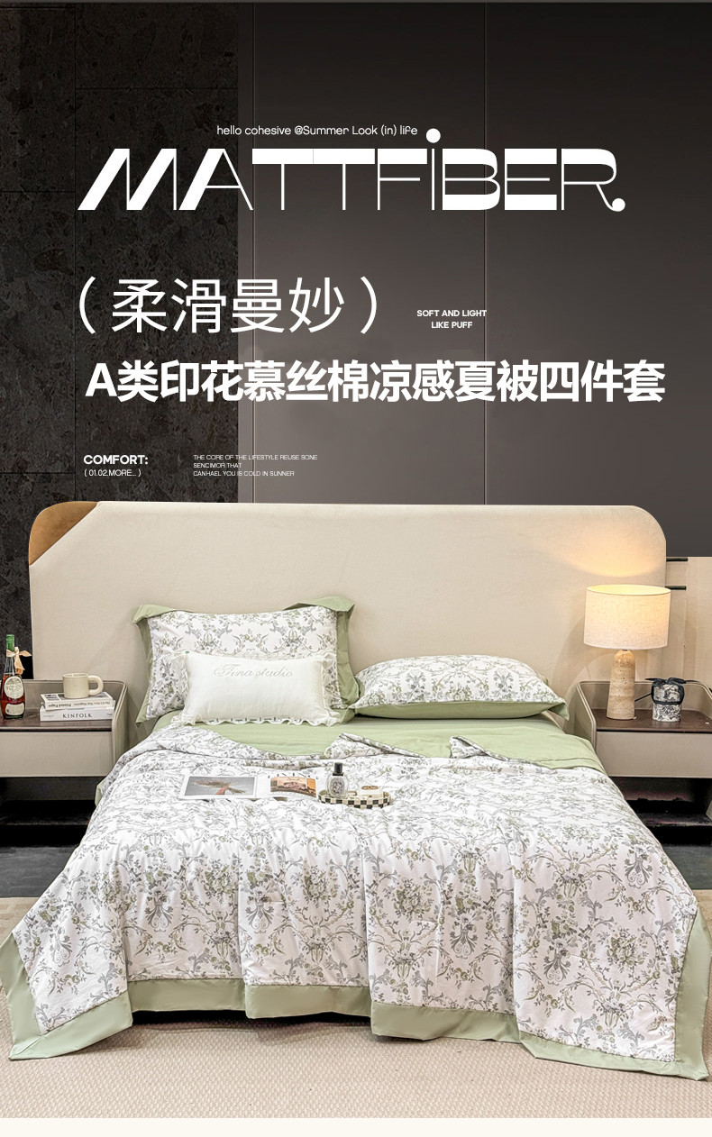 当前位置: 91家纺网 > 商品网购 > 床品套件 > 四件套 > 其它四件套 > 慕木家纺 2026新款A类印花慕丝棉凉感夏被夏凉被空调被四件套 清漫+绿
