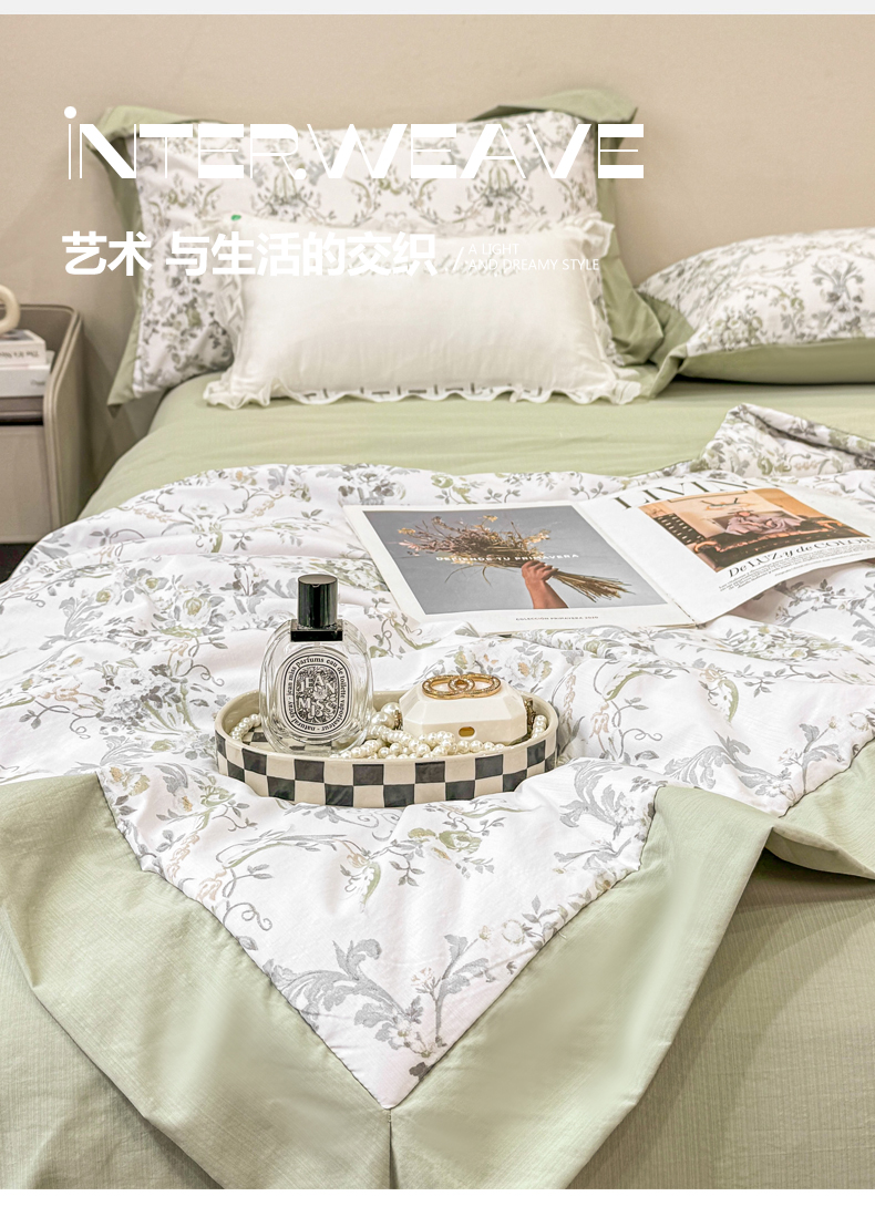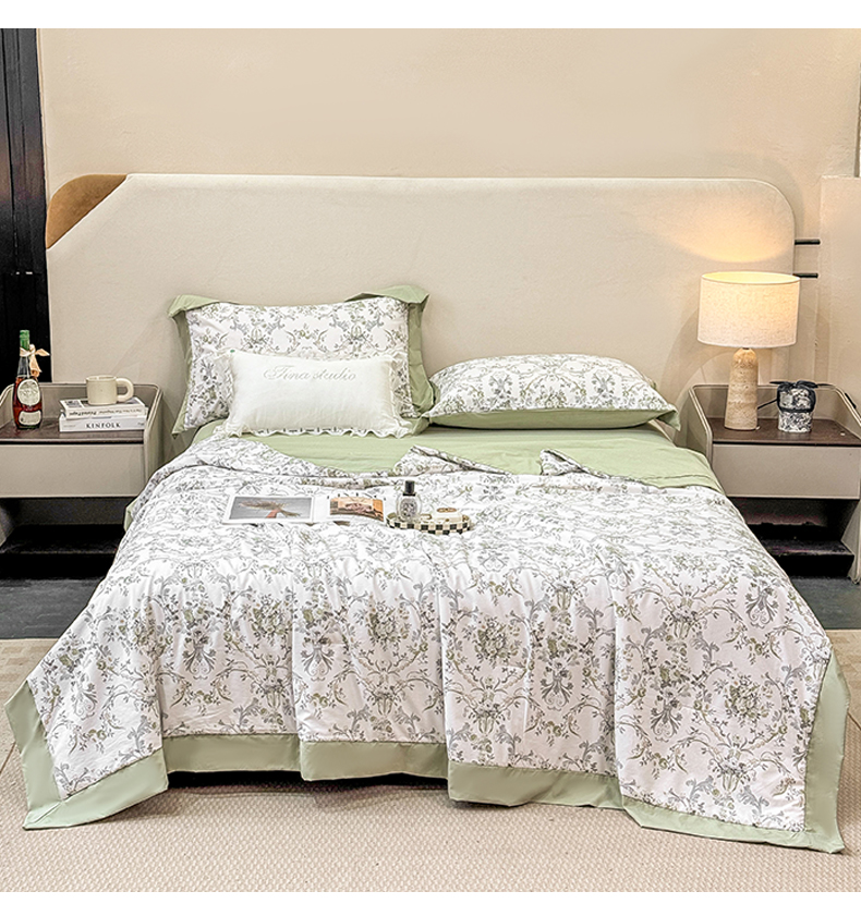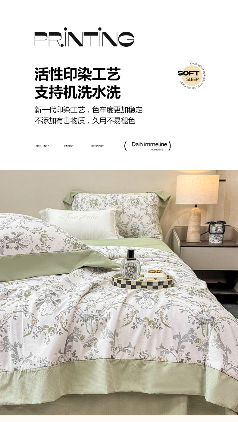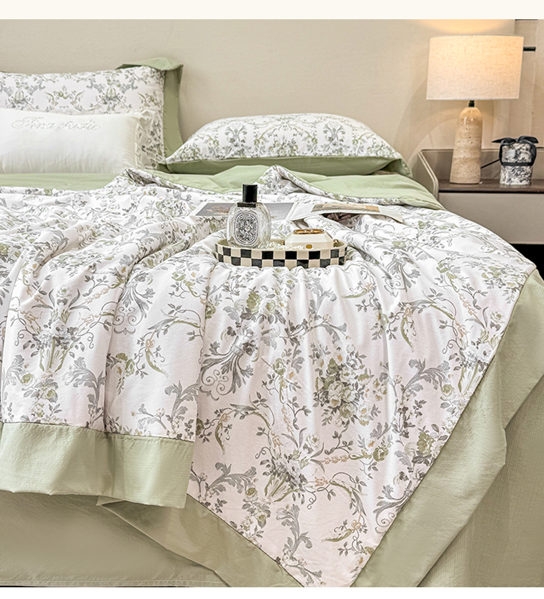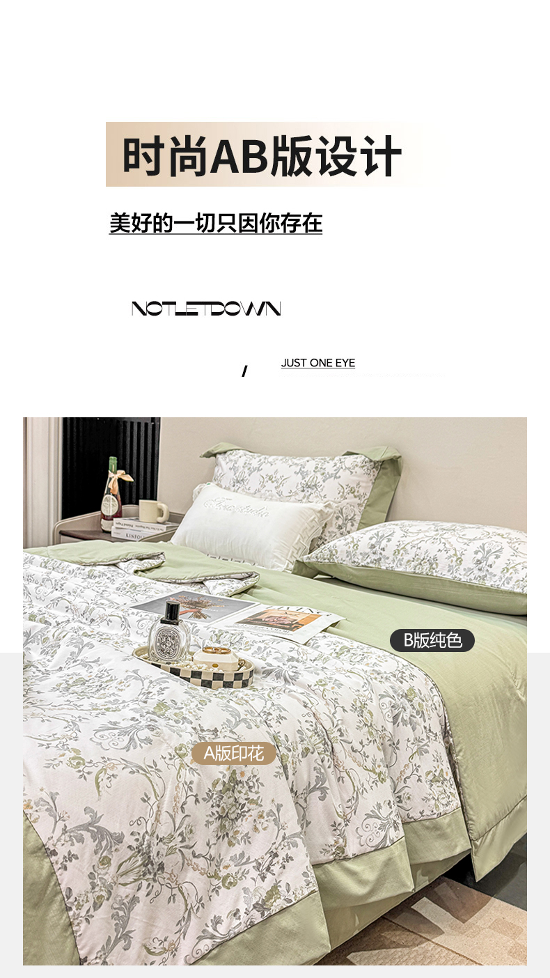 当前位置: 91家纺网 > 商品网购 > 床品套件 > 四件套 > 其它四件套 > 慕木家纺 2026新款A类印花慕丝棉凉感夏被夏凉被空调被四件套 清漫+绿