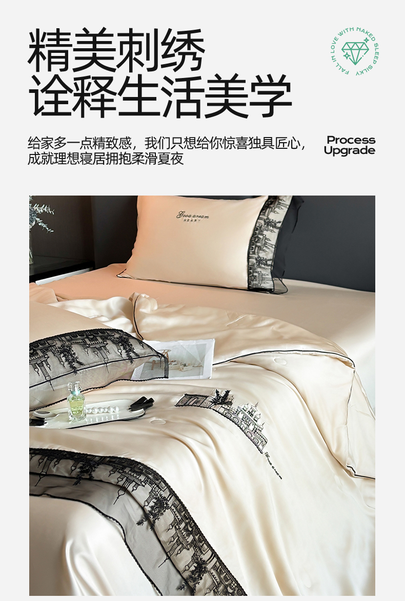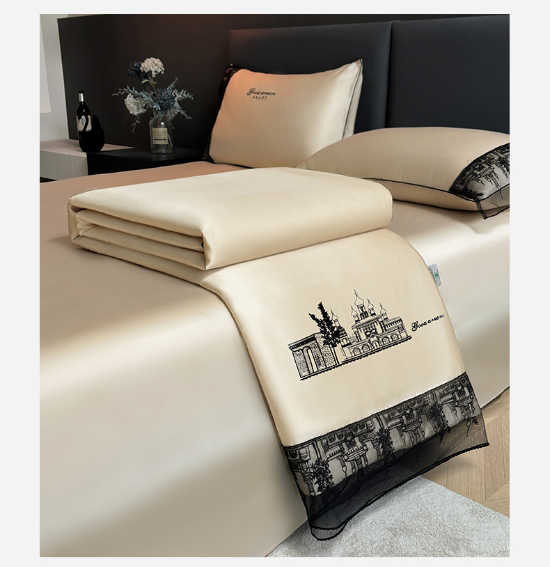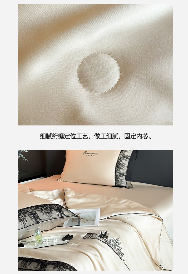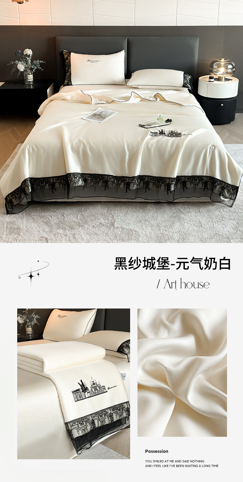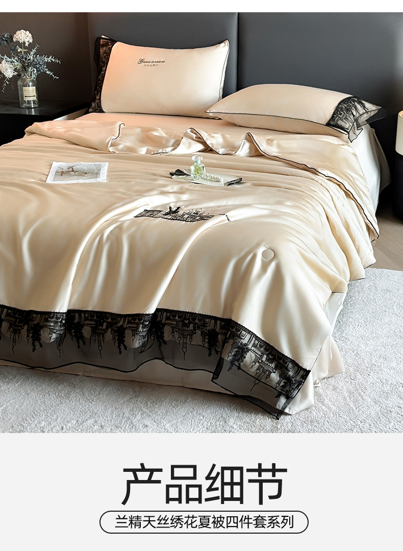 • 91家纺网 家纺一手货源 找家纺 梵蒂莎 2026新款黑纱城堡系列60s兰精天丝夏被四件套夏凉被空调被被子被芯床单枕套床笠(需要买家秀,加微信 黑纱城堡-居其香槟