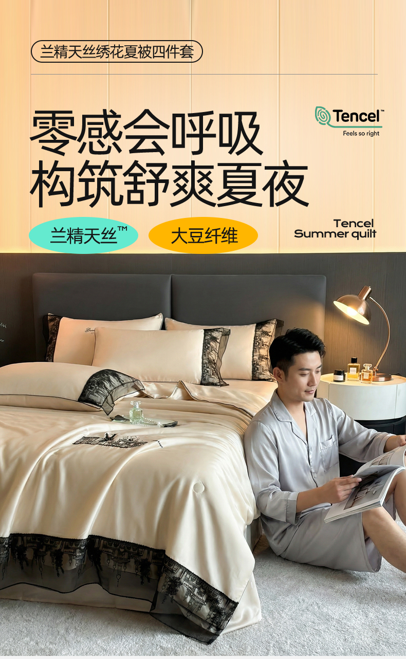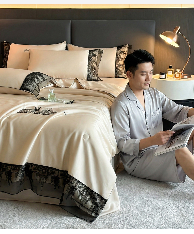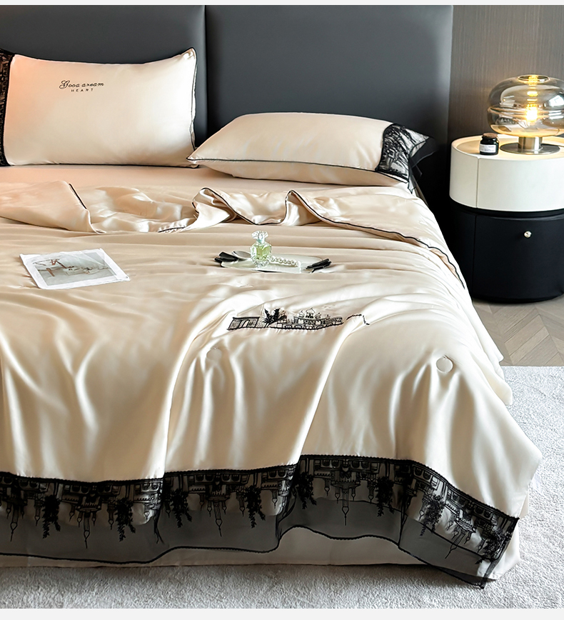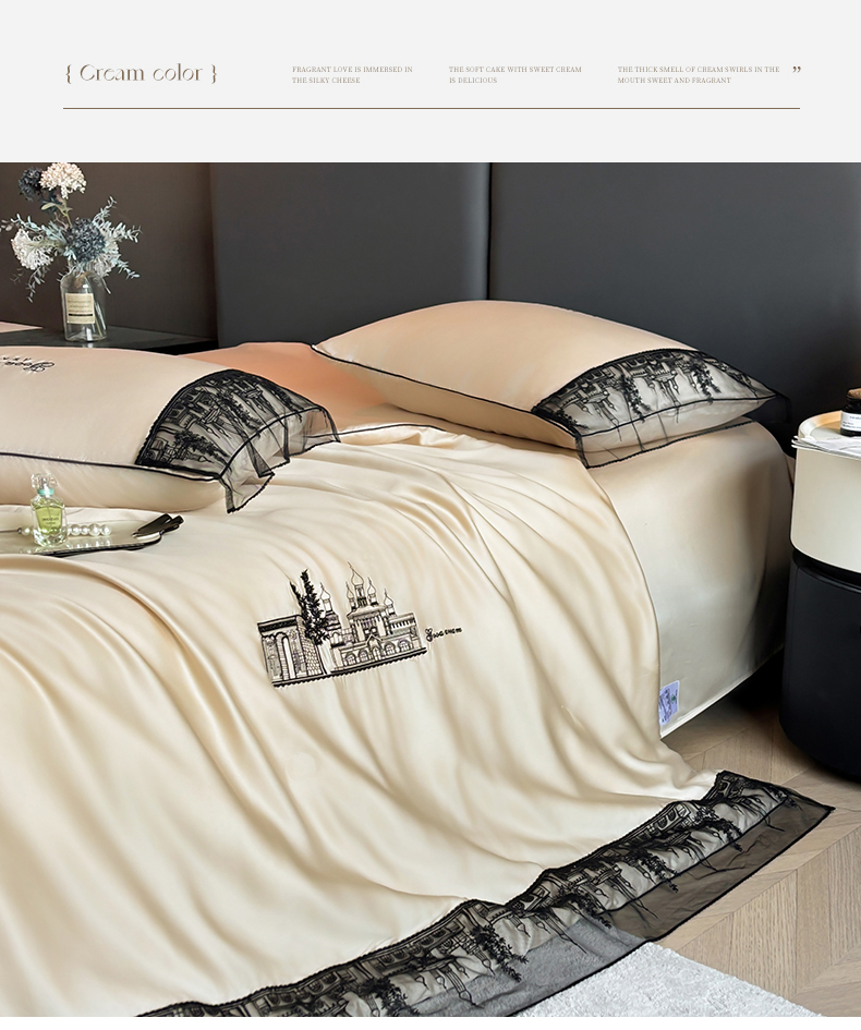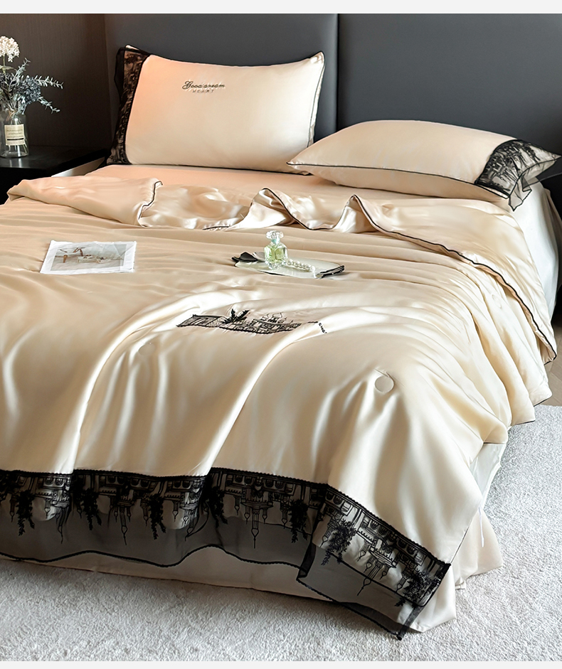 • 91家纺网 家纺一手货源 找家纺 梵蒂莎 2026新款黑纱城堡系列60s兰精天丝夏被四件套夏凉被空调被被子被芯床单枕套床笠(需要买家秀,加微信 黑纱城堡-居其香槟