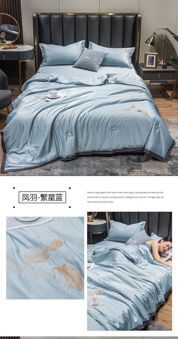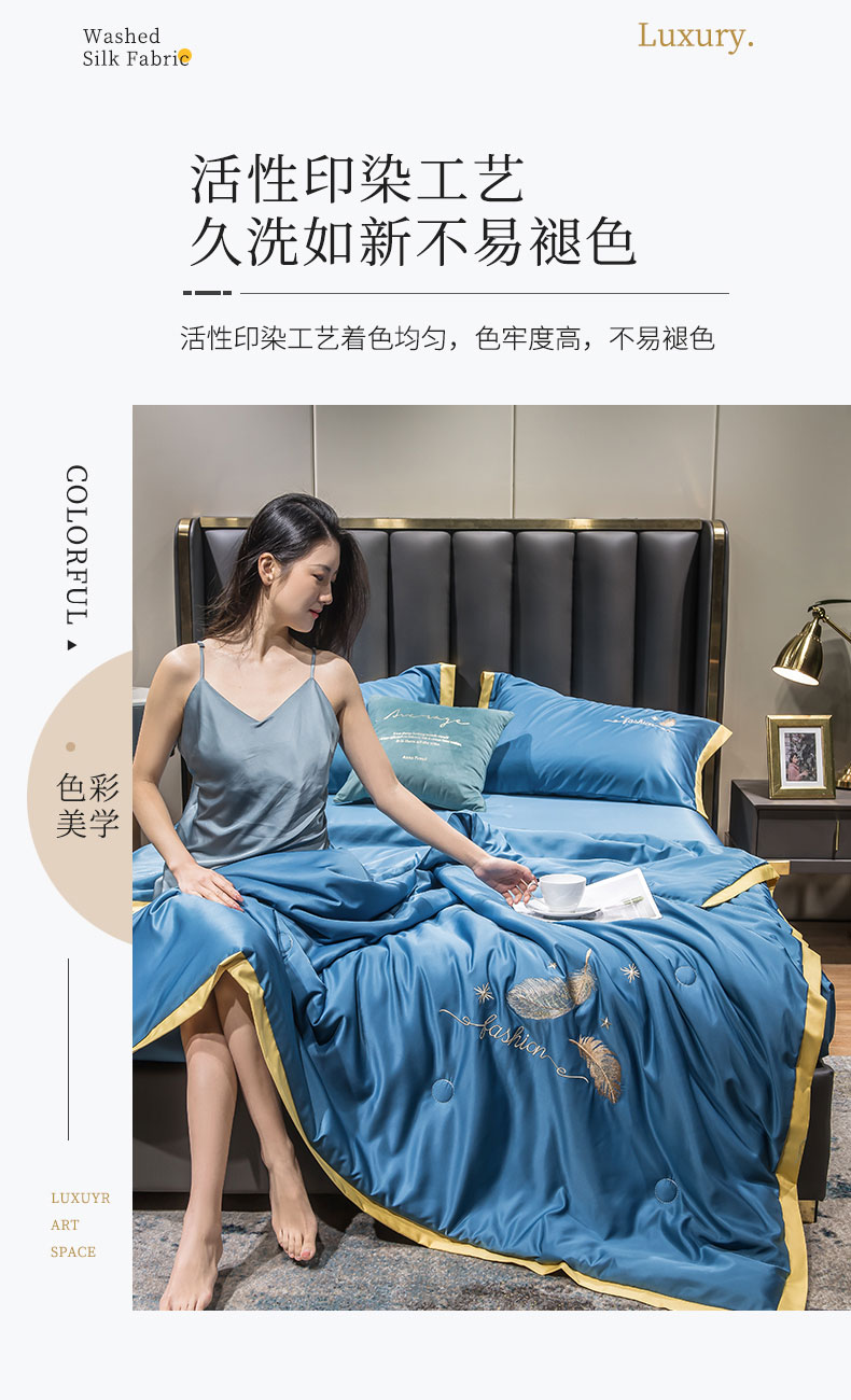 • 91家纺网 家纺一手货源 找家纺 (总)蕾诺家纺 2026新款冰丝刺绣真丝轻奢简约夏被 被子被芯,潮流-墨绿,潮流-繁星蓝,潮流-高级灰,潮流-奶油粉,潮流-嫩黄,潮流-浅灰,潮流-月光蓝