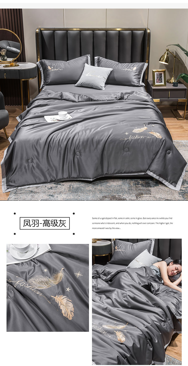 • 91家纺网 家纺一手货源 找家纺 蕾诺家纺 2026新款冰丝刺绣真丝轻奢简约夏被 被子被芯 潮流-浅灰