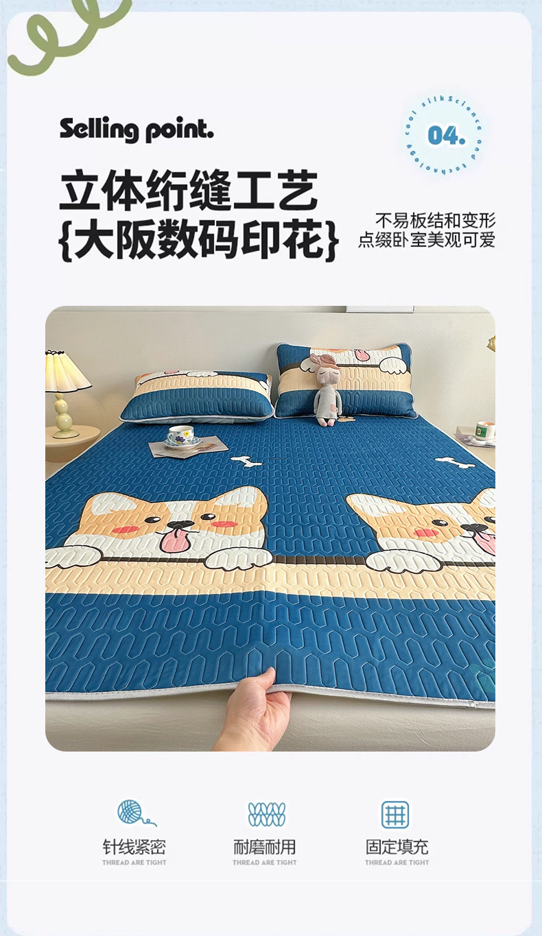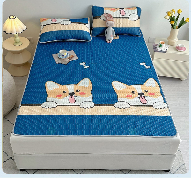(总)佳鸿家纺 2026新款冰丝防水乳胶凉席隔尿垫姨妈垫床垫保护垫单人床双人床可机洗,防水蔚蓝柯基,防水趴趴狗,防水汪汪柴犬,防水太空星球,防水白熊-咖