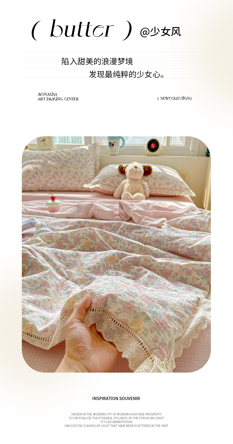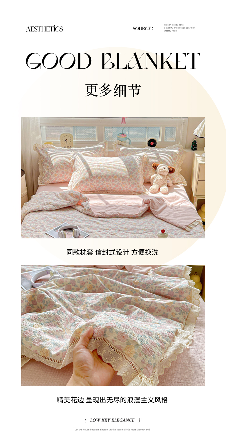 (总)2026新款云感皱皱纱全棉花边款夏被四件套,百福兰,春天里,春晓,豆蔻,蝴蝶梦,可颂,兰黛,山野栀子,素颜,太妃糖,微凉薄荷,心动,遇见,芝士奶酪,紫爱心,紫苏,白茶绿,初恋,蜡笔画,莱茵河畔,桃花诺,小黑兔,春不晚,春日小熊,可颂,陌上花开,莫奈,若欢-绿,若欢紫色,舒芙蕾,田园拾趣-黄,兔小姐,郁金香小兔,波点小兔粉,波点小兔兰,花园兔,情人节,山野栀子,十里桃花粉,十里桃花紫,舒芙蕾,太妃糖,夏天,运动健将熊, 白月光,缤纷几何,格格西高地,海盐蓝小格,黎漫,木槿绿,奶油泡芙,欧若拉,桃夭,甜茶,小晴天,芋泥紫小格,紫色蝴蝶结