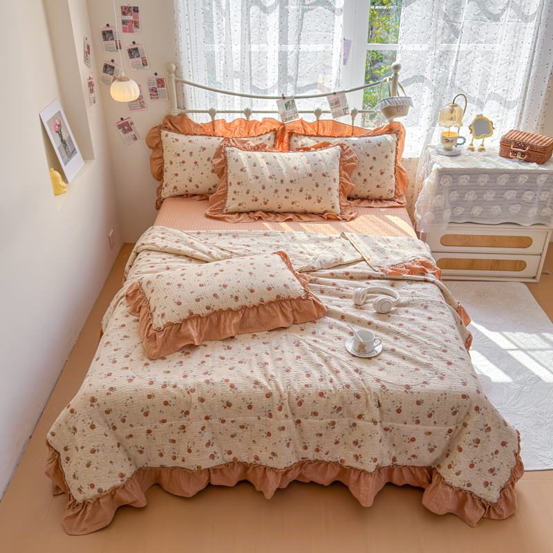 商品名称:梵希雅 2026新款泡芙纱床盖夏被四件套 柿柿如意