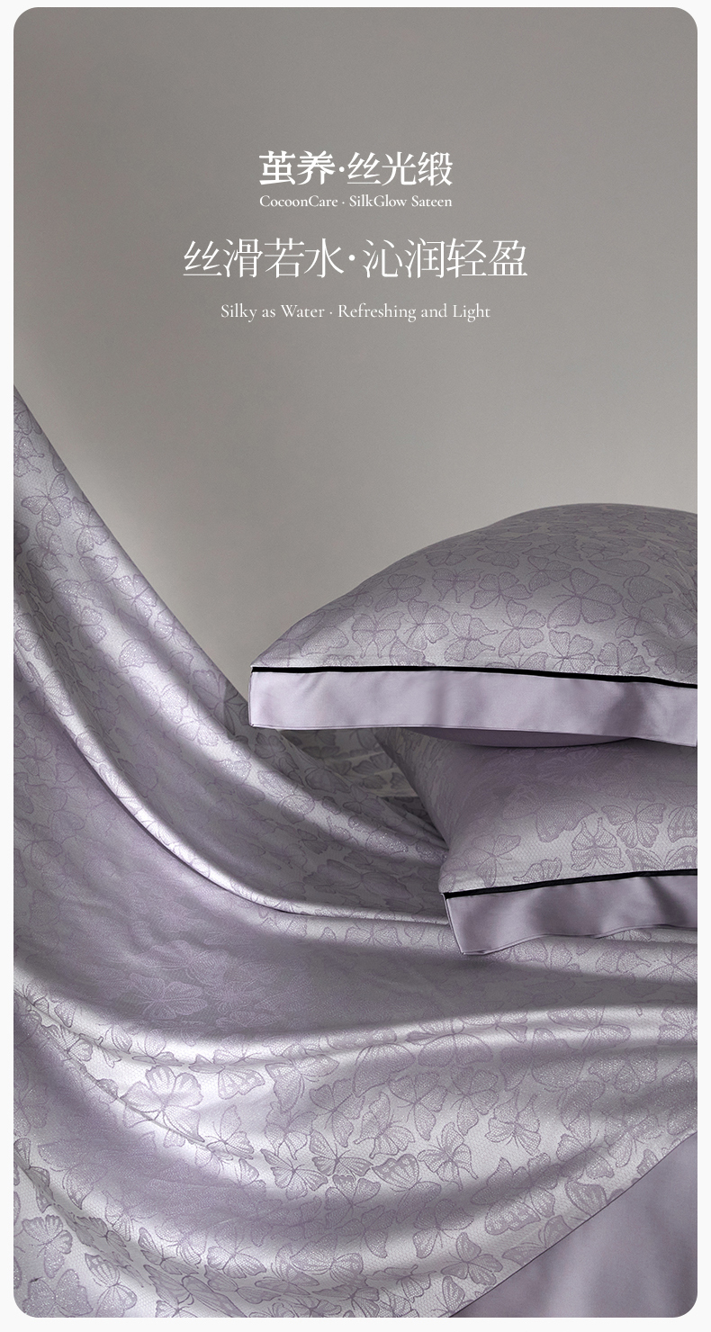 (总)金奇达家纺 2026新款丝光色织提花四件套-蝶梦浮光系列(标准号全网控价(折后券后)不低于359元 会员减50),蝶梦浮光- 琉璃紫,蝶梦浮光-雾霭灰,蝶梦浮光-奶昔杏,蝶梦浮光-织云橙