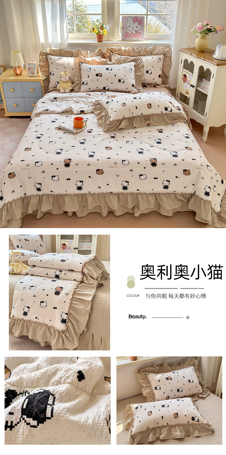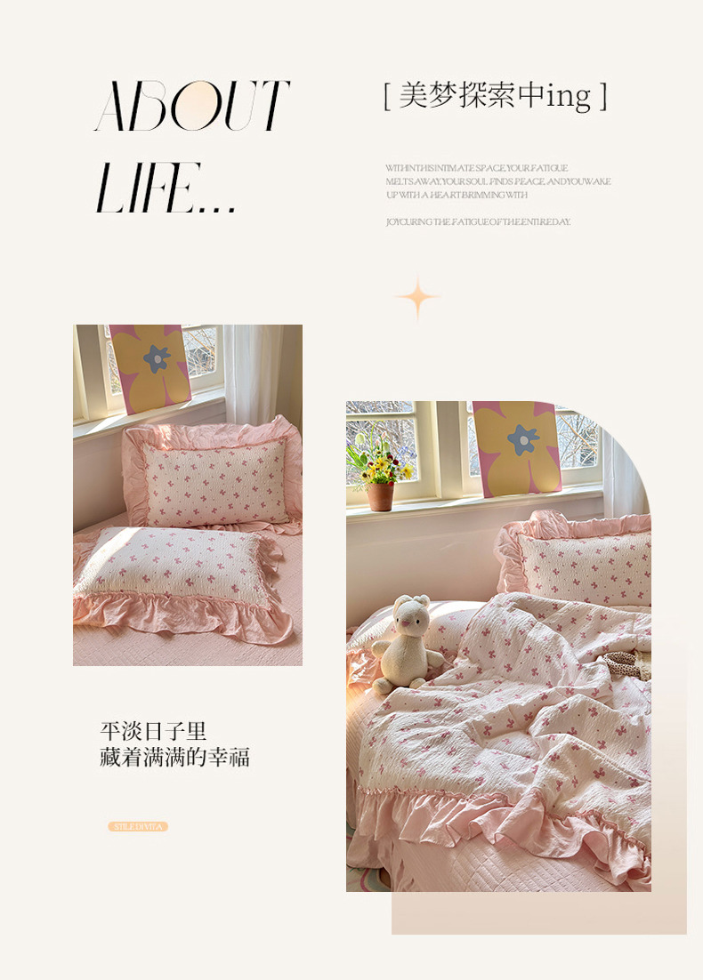 (总)禾沐 2026新款云感泡芙纱全棉蕾丝花边款夏被四件套,波点,花镜人偶,格格心,星芒凯蒂,花丛萌免,莓系花伐,片刻小狗,田园免,只闻花香,格纹熊,花软雾,猫咪集,木马小花团,暖橘枝,蔷薇花,若梦,星星人,胭脂,芋泥花束,悦悦小兔,组合图