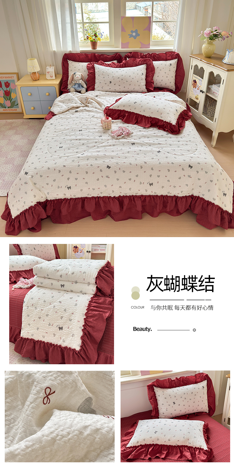 当前位置: 91家纺网 > 商品网购 > 床品套件 > 四件套 > 夏被四件套 > 禾沐 2026新款云感泡芙棉床盖夏被四件套AA款(夏被款) 甜桃心