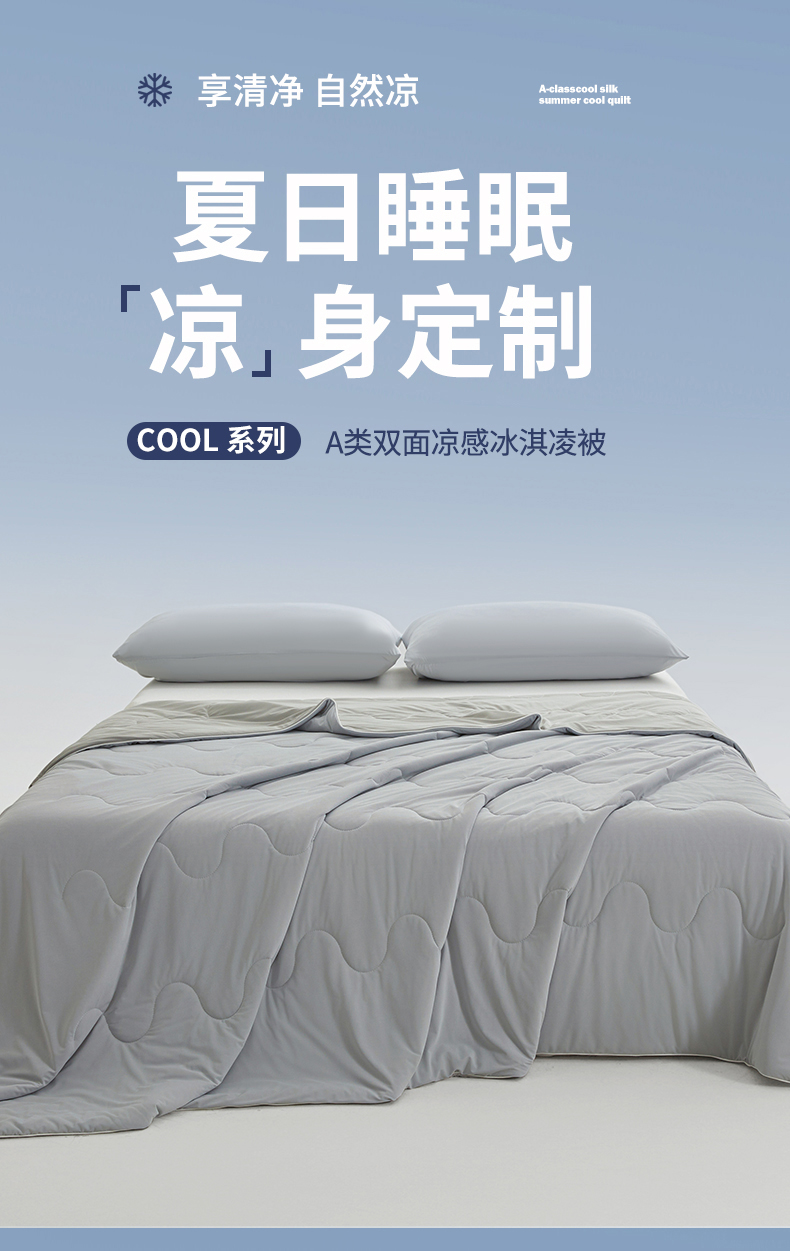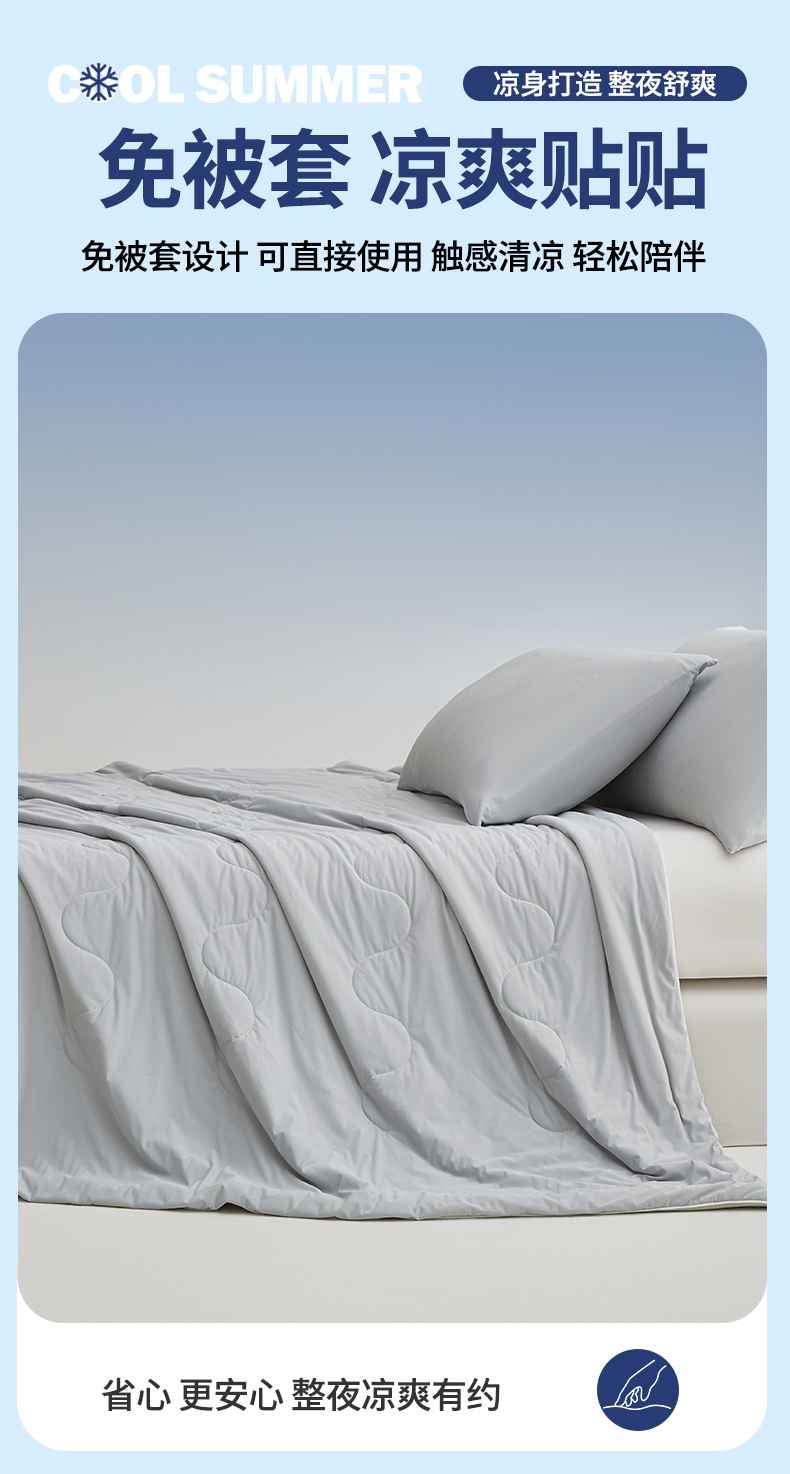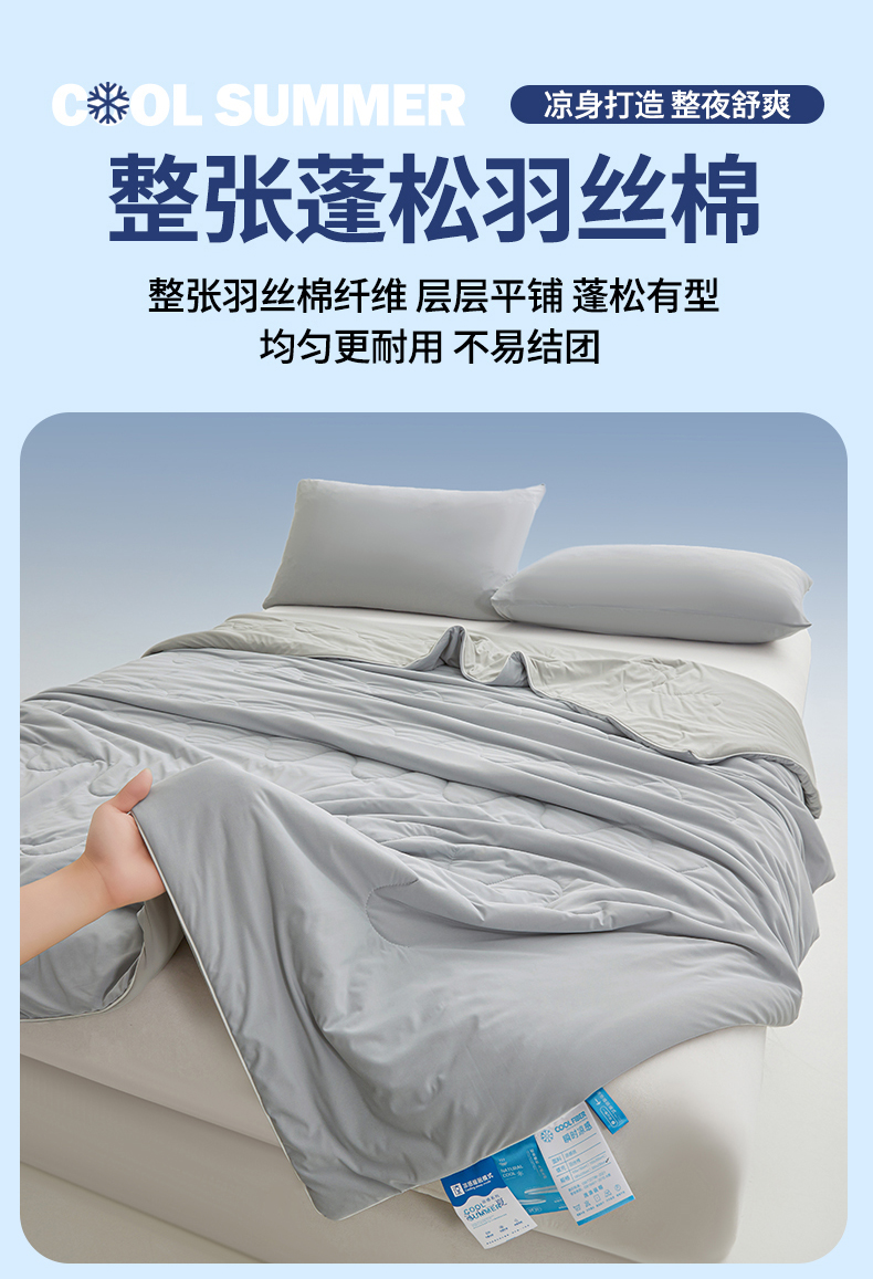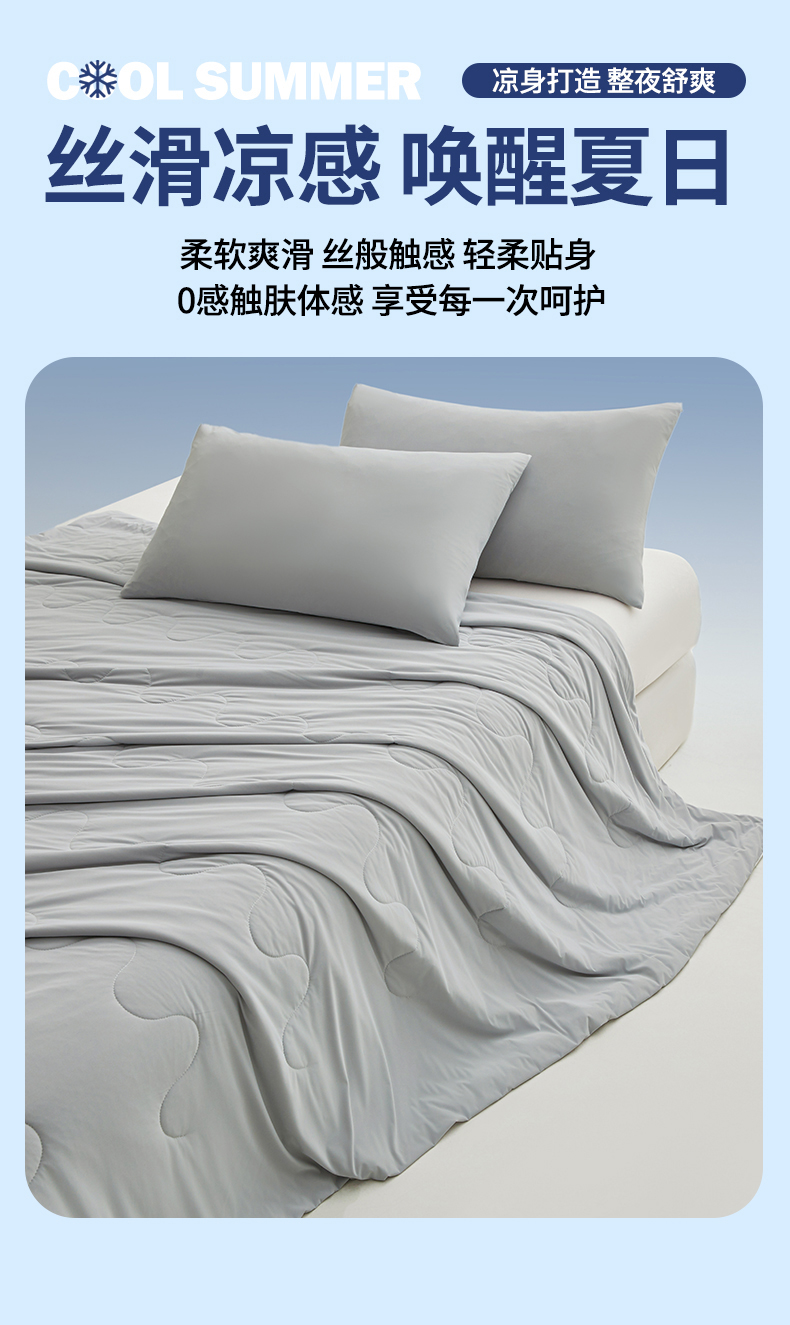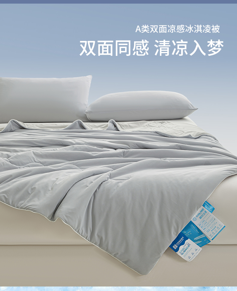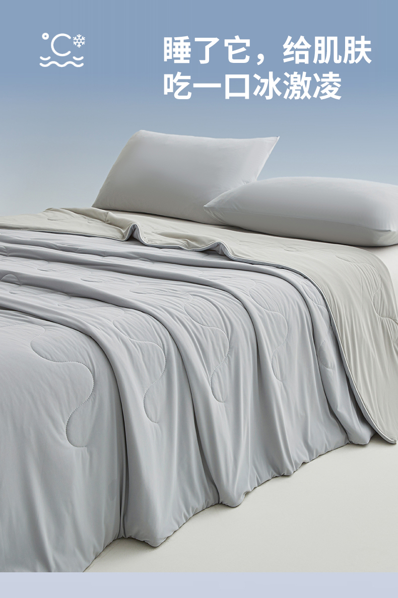 商品名称:小禹仔家纺 2026新款氨纶凉感印花夏被 烟云灰拼浅灰