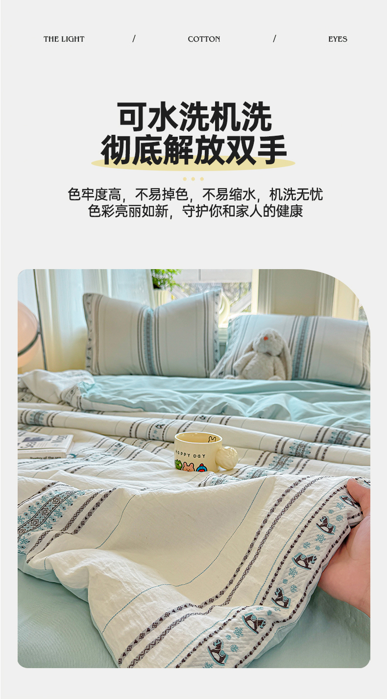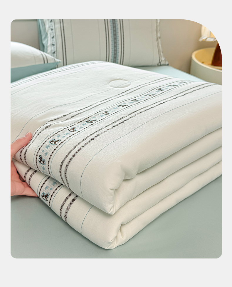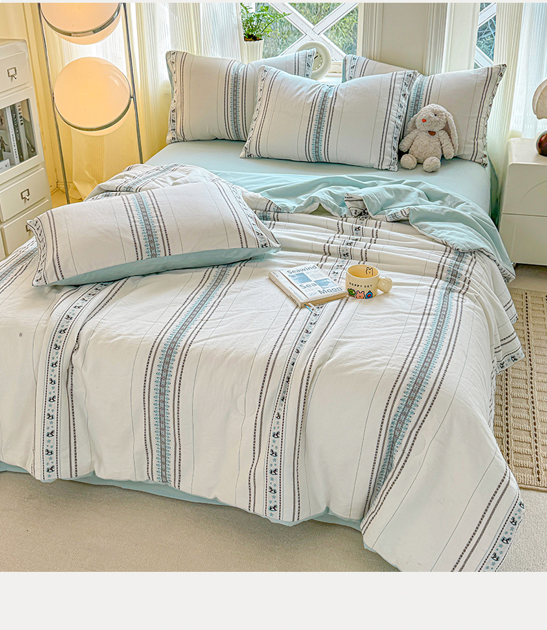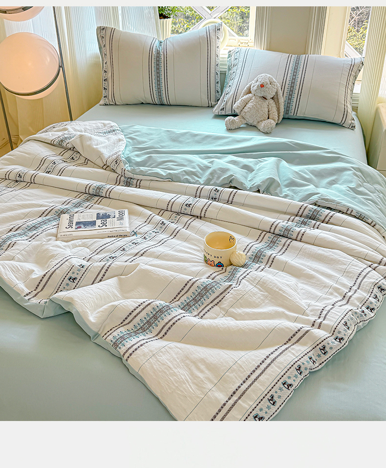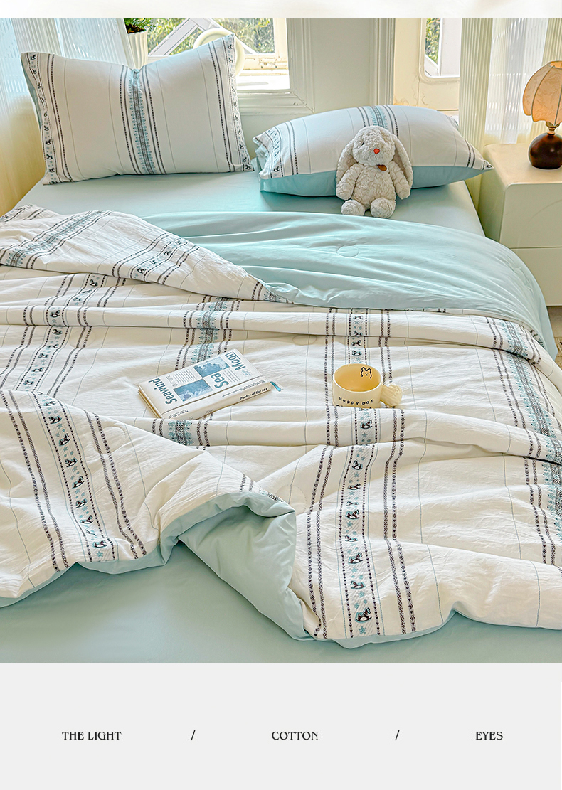 灰鲸 2026新款全棉色织提花夏被夏凉被空调被 费尔岛小马-蓝