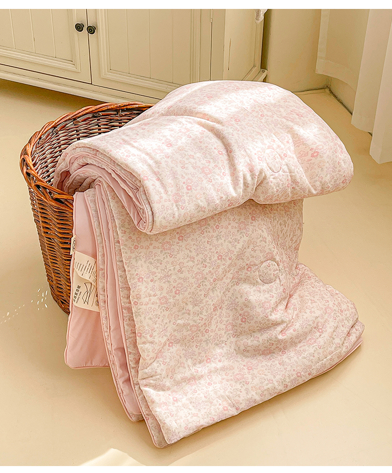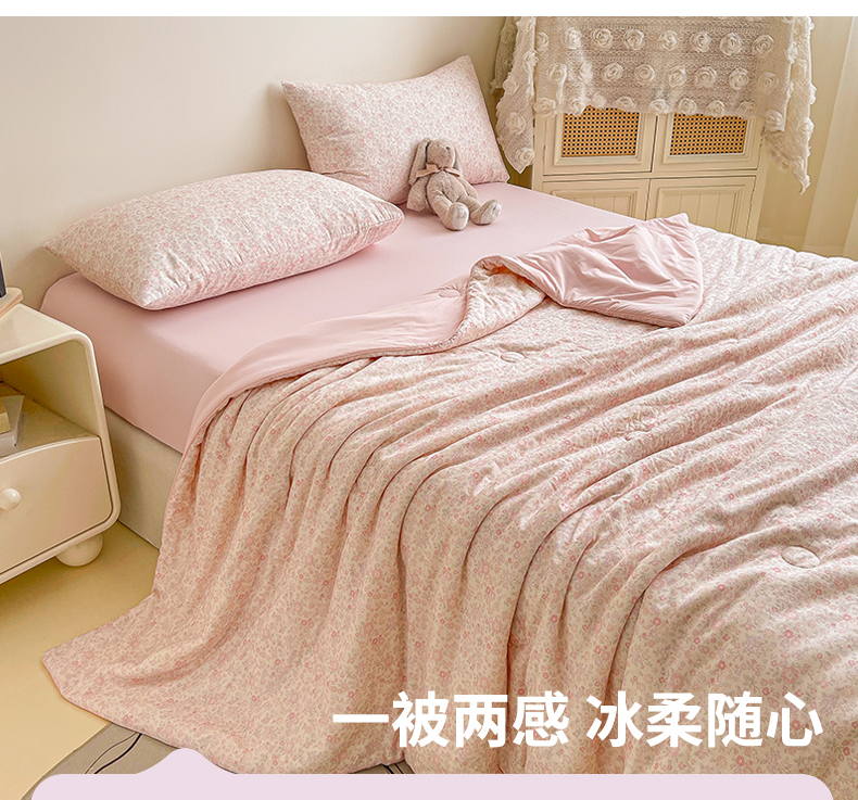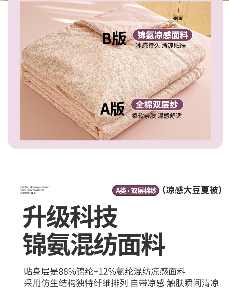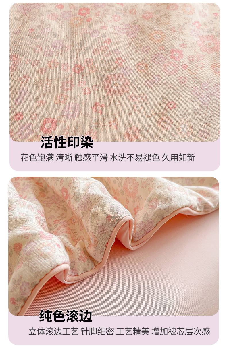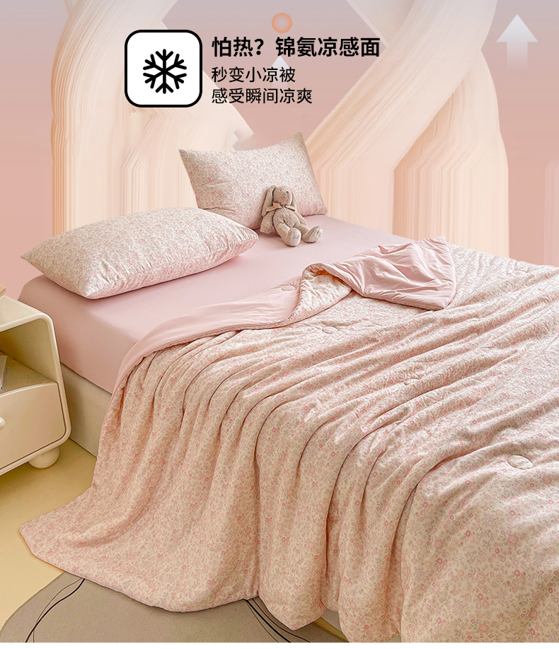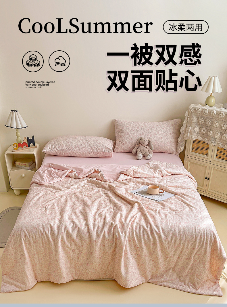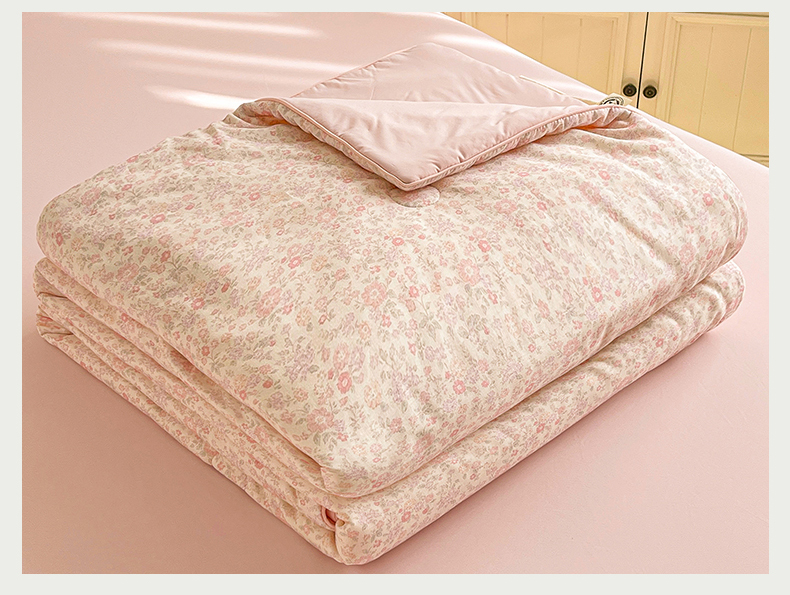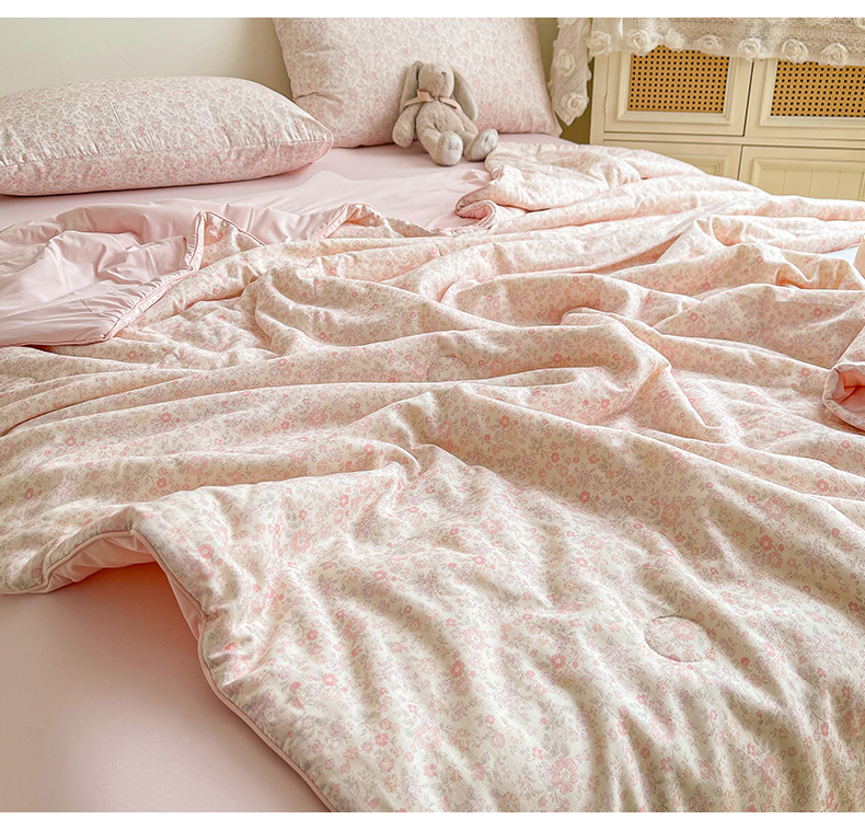 • 91家纺网 家纺一手货源 找家纺 小禹仔家纺 2026新款A类印花双层纱凉感大豆夏被 花喃-粉