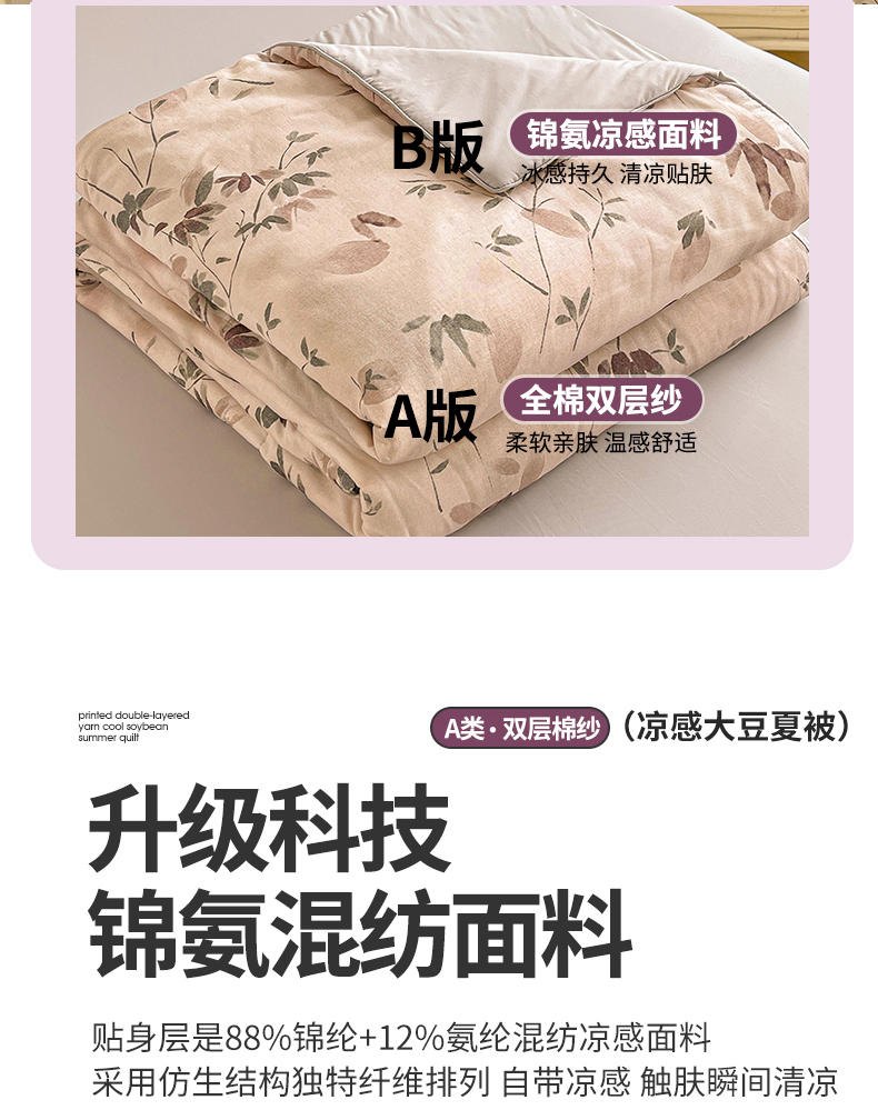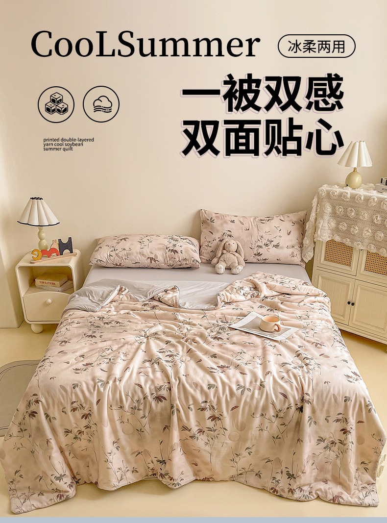 • 91家纺网 家纺一手货源 找家纺 小禹仔家纺 2026新款A类印花双层纱凉感大豆夏被 青时