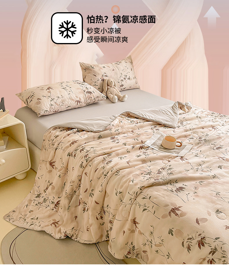 (总)小禹仔家纺 2026新款氨纶凉感印花夏被,夏瑶绿,半山花,风荷举,花陌语,曼莎,木绵芙,沐野,晴川,樱絮,櫻绯雨,薄荷绿,冰感粉,冰感粉拼薄荷绿,藏青拼天空蓝,米色,天空蓝,天空蓝拼米色,烟云灰,烟云灰拼浅灰,优雅紫