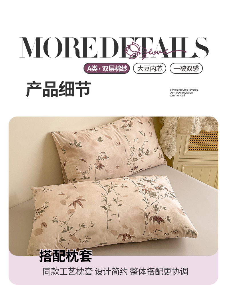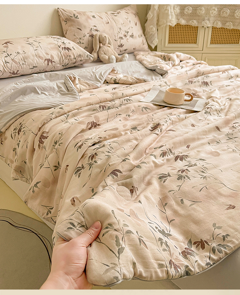 小禹仔家纺 2026新款A类印花双层纱凉感大豆夏被 青时