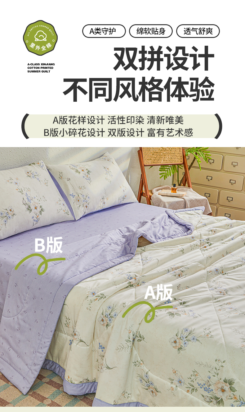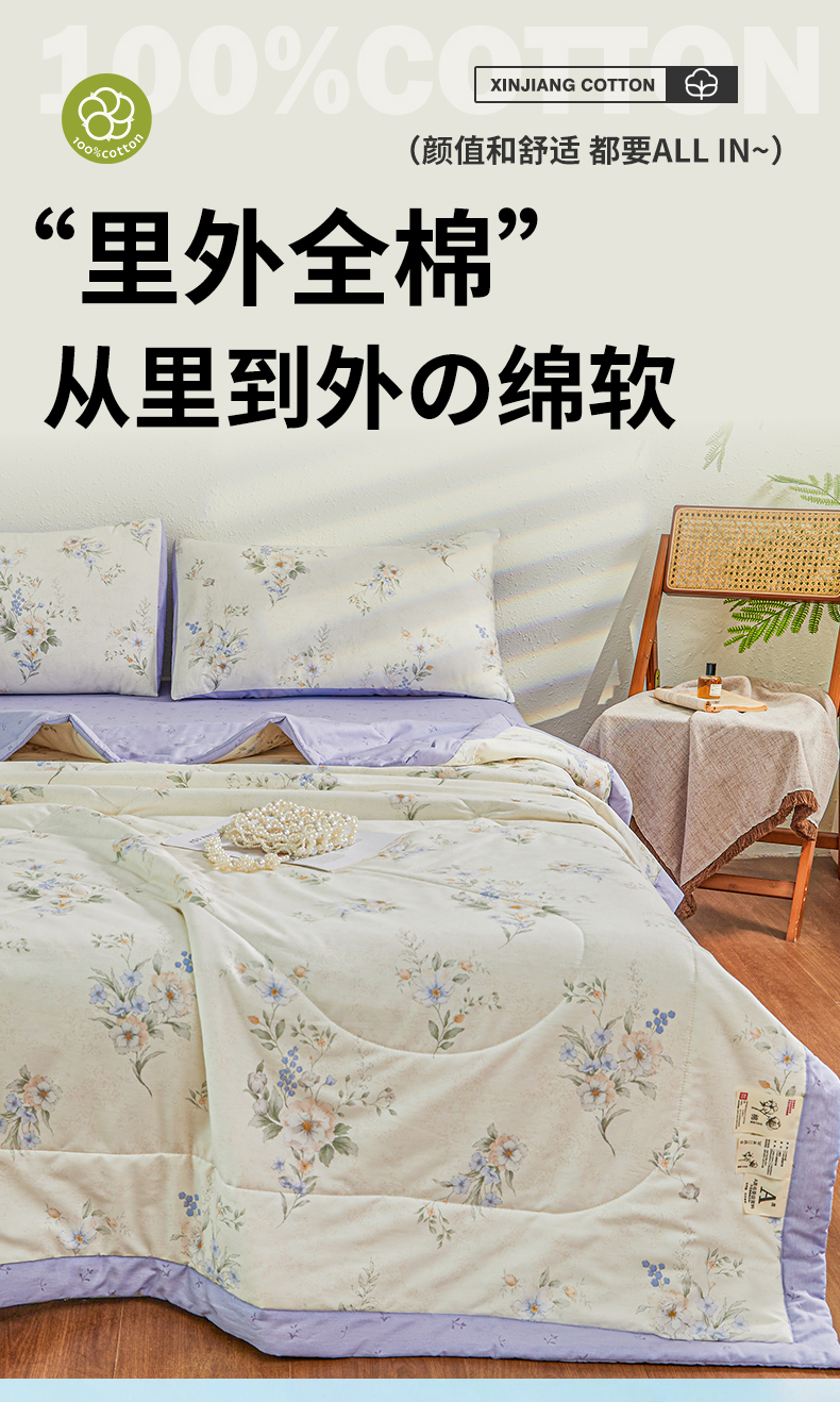 小禹仔家纺 2026新款A类里外全棉印花棉花夏被 淡紫花瑶