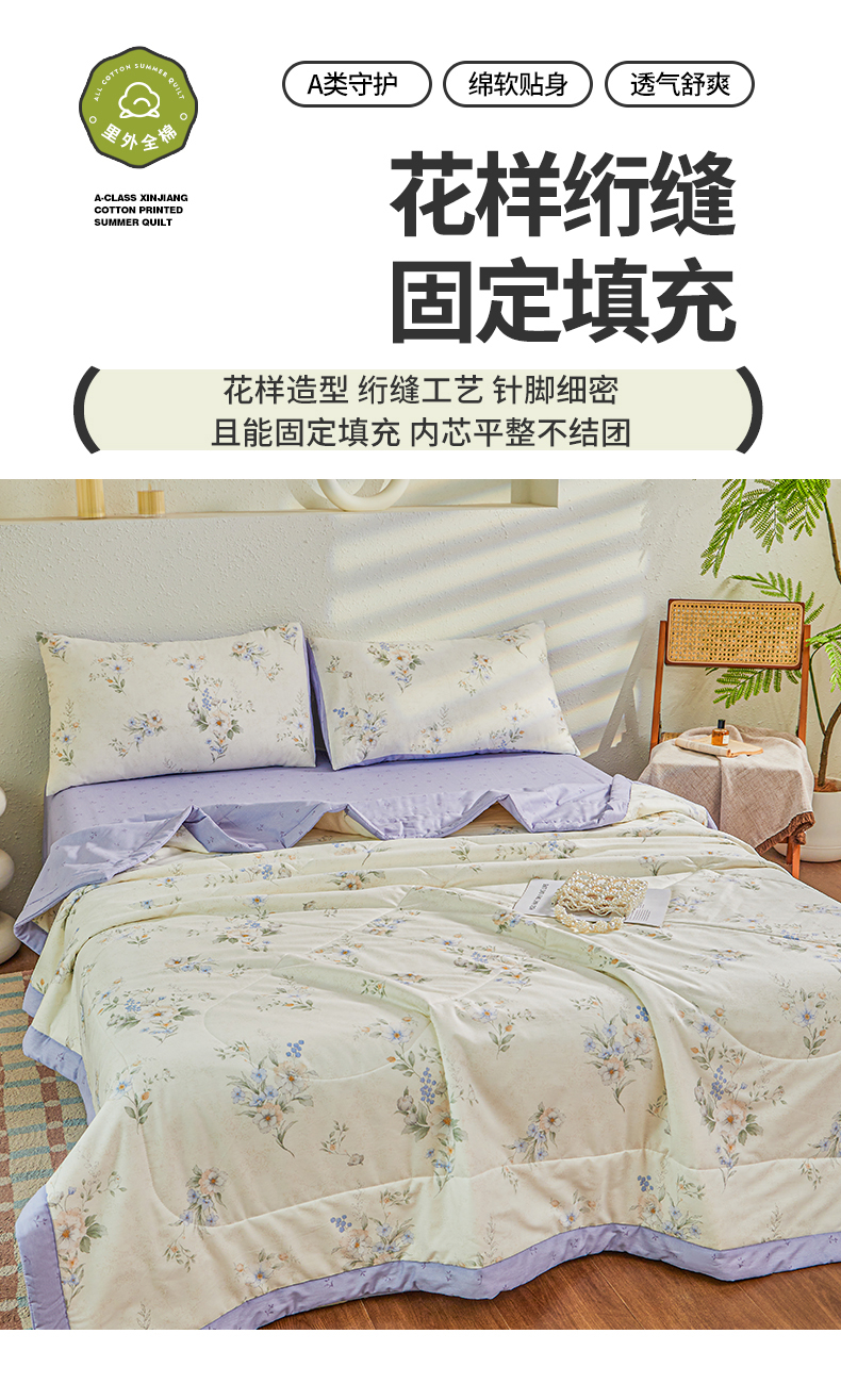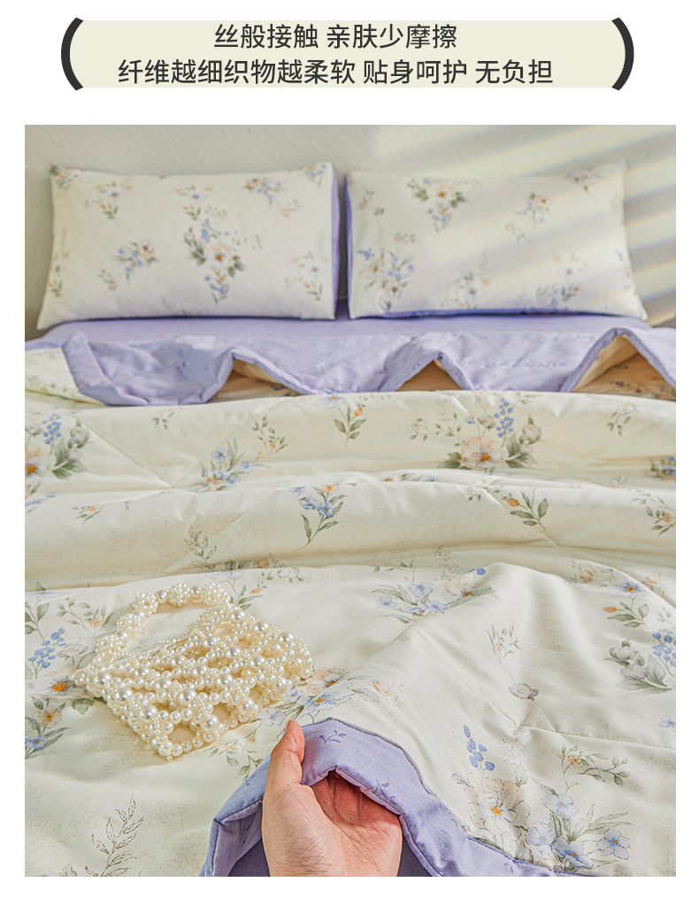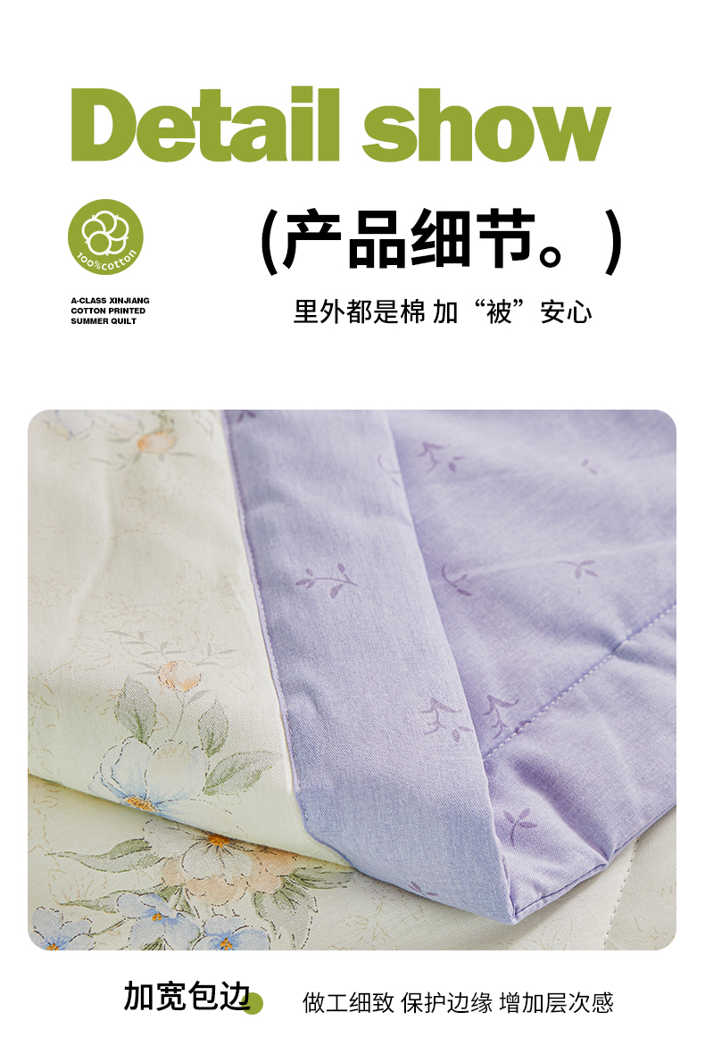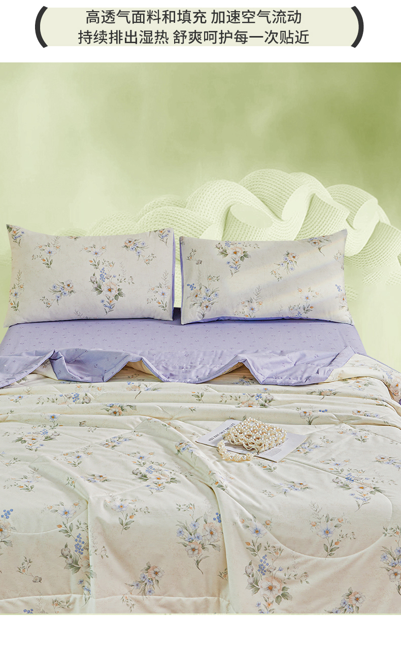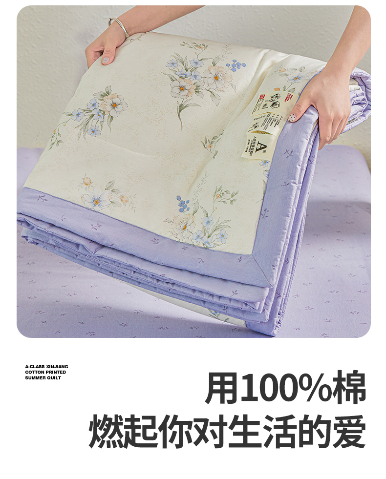 • 91家纺网 家纺一手货源 找家纺 小禹仔家纺 2026新款A类里外全棉印花棉花夏被 淡紫花瑶