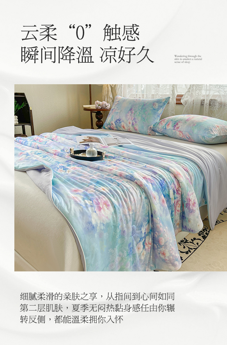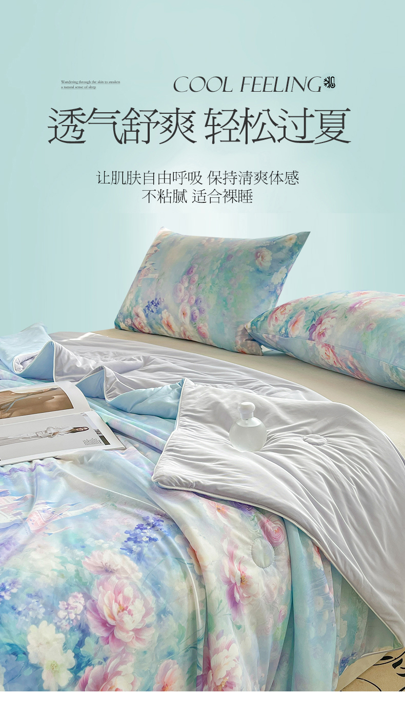 (总)小禹仔家纺 2026新款氨纶凉感印花夏被,夏瑶绿,半山花,风荷举,花陌语,曼莎,木绵芙,沐野,晴川,樱絮,櫻绯雨,薄荷绿,冰感粉,冰感粉拼薄荷绿,藏青拼天空蓝,米色,天空蓝,天空蓝拼米色,烟云灰,烟云灰拼浅灰,优雅紫