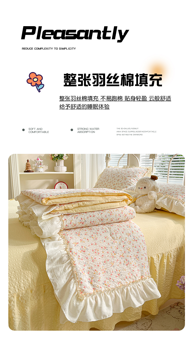 当前位置: 91家纺网 > 商品网购 > 床品套件 > 四件套 > 夏被四件套 > 富米莱(原臻工厂) 2026新款超温柔高弹线密拷花边款泡芙双层纱夏凉被床盖床裙四件套 密拷花边-粉糖小兔