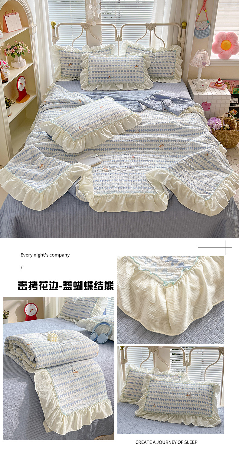当前位置: 91家纺网 > 商品网购 > 床品套件 > 四件套 > 夏被四件套 > 富米莱(原臻工厂) 2026新款超温柔高弹线密拷花边款泡芙双层纱夏凉被床盖床裙四件套 密拷花边-小粉花