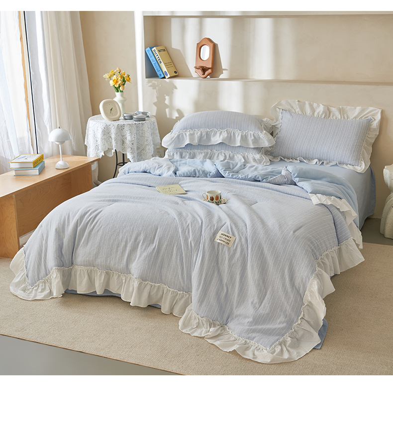 • 91家纺网 家纺一手货源 找家纺 (总)晨曦家纺 2026新款荷叶花边泡芙纱提花夏凉被四件套可水洗棉夏被四件套少女风 91家纺网 家纺一手货源 找家纺 (总)晨曦家纺 2026新款荷叶花边泡芙纱提花夏凉被四件套可水洗棉夏被四件套少女风