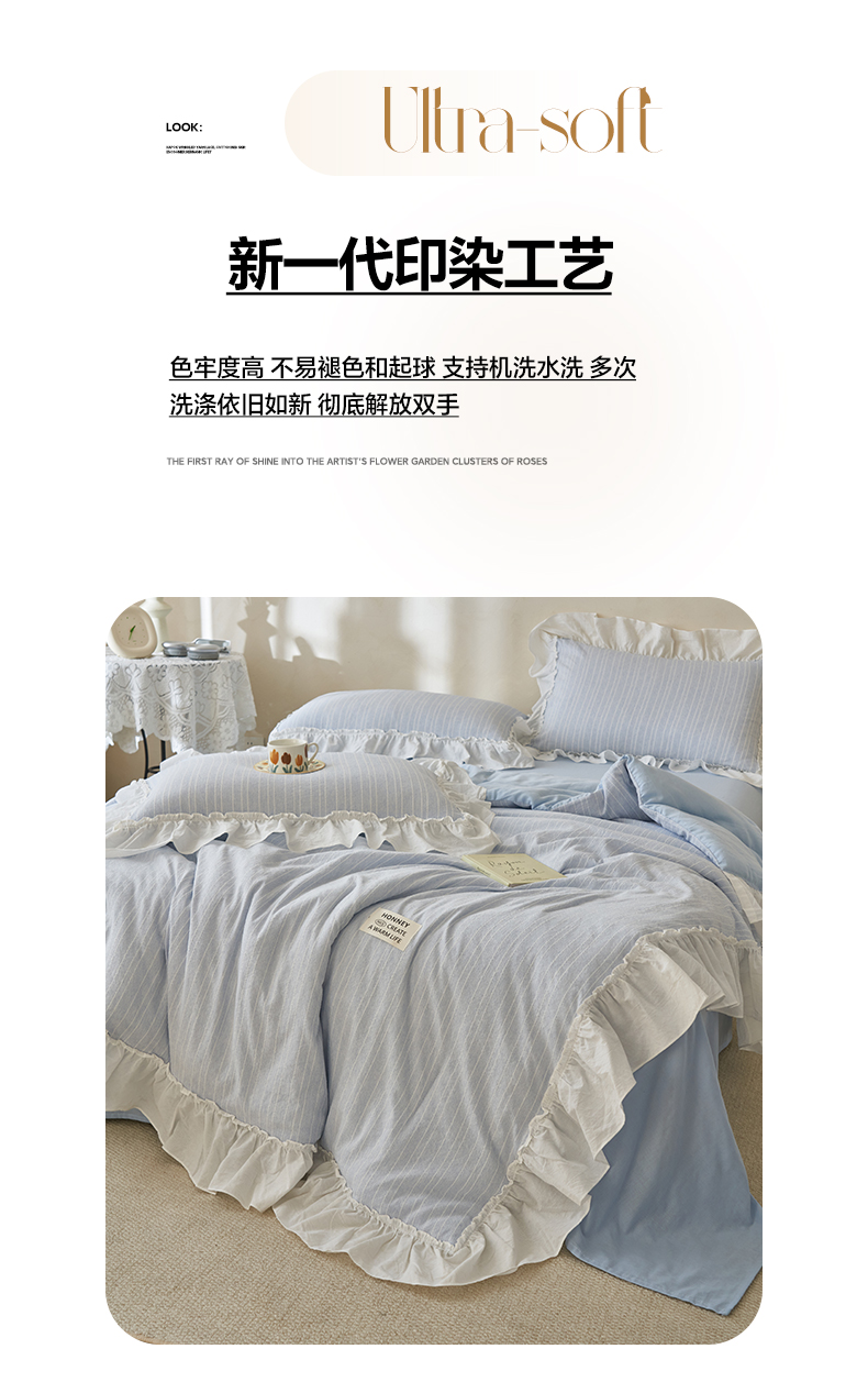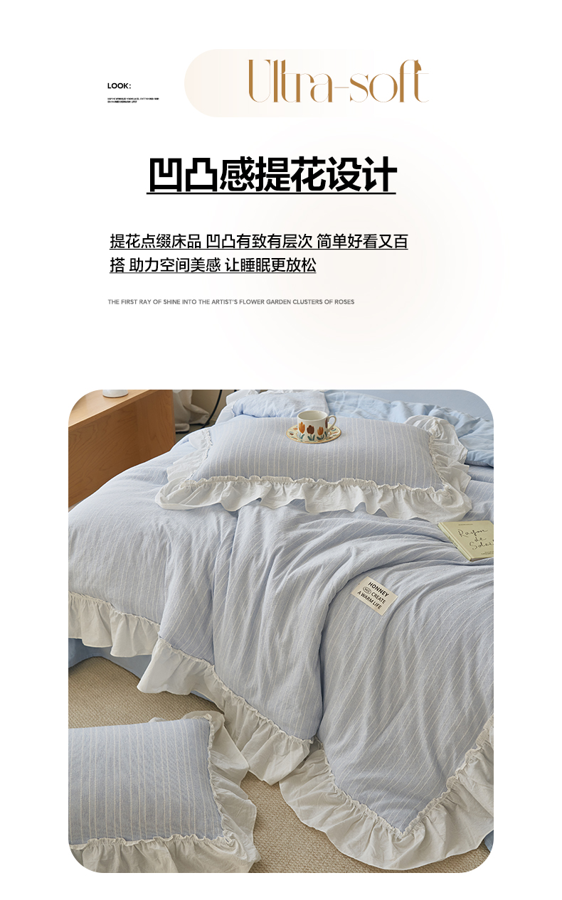 • 91家纺网 家纺一手货源 找家纺 (总)晨曦家纺 2026新款荷叶花边泡芙纱提花夏凉被四件套可水洗棉夏被四件套少女风