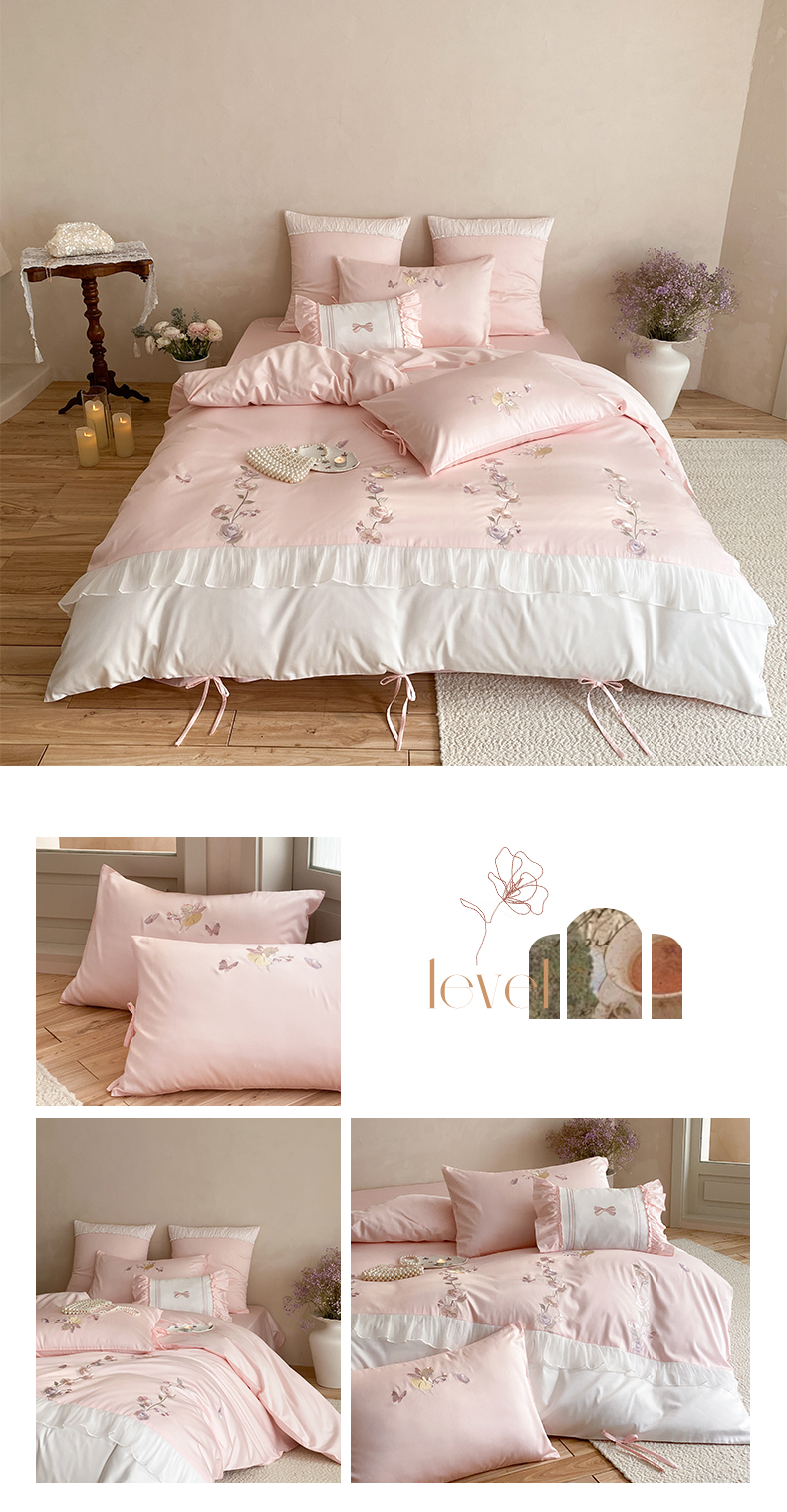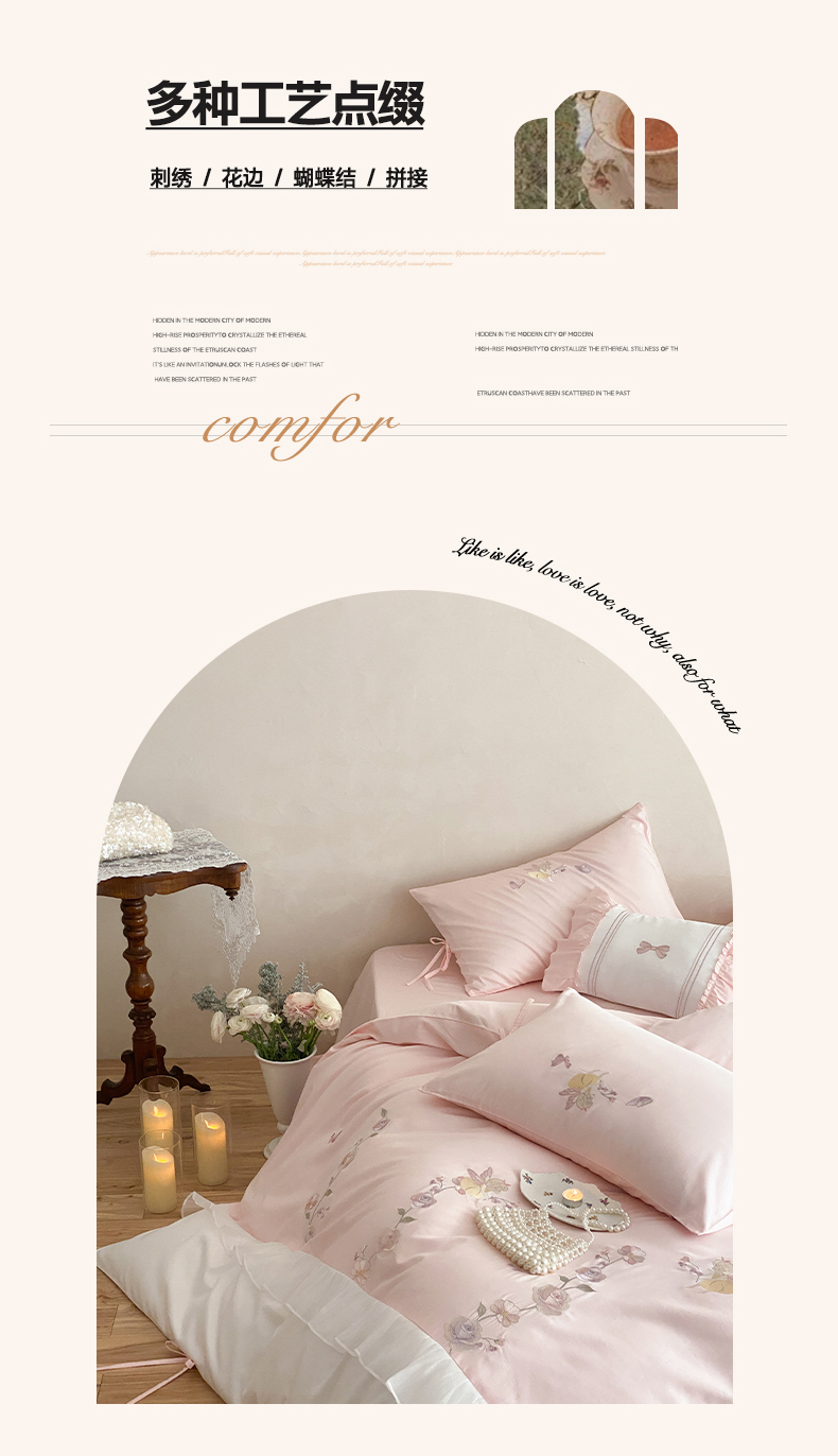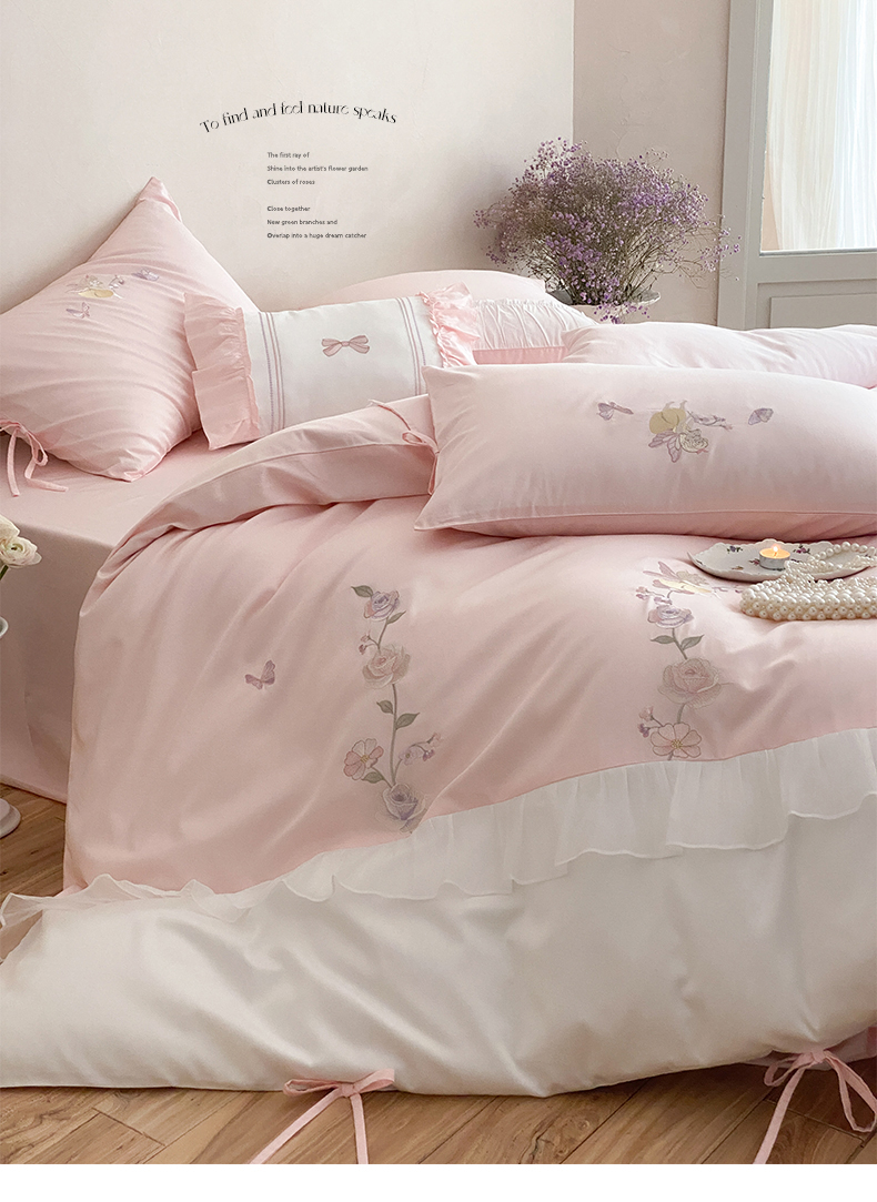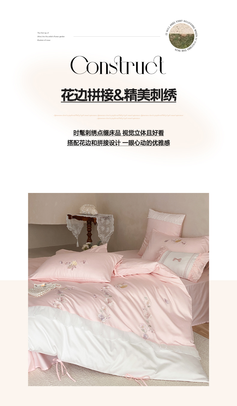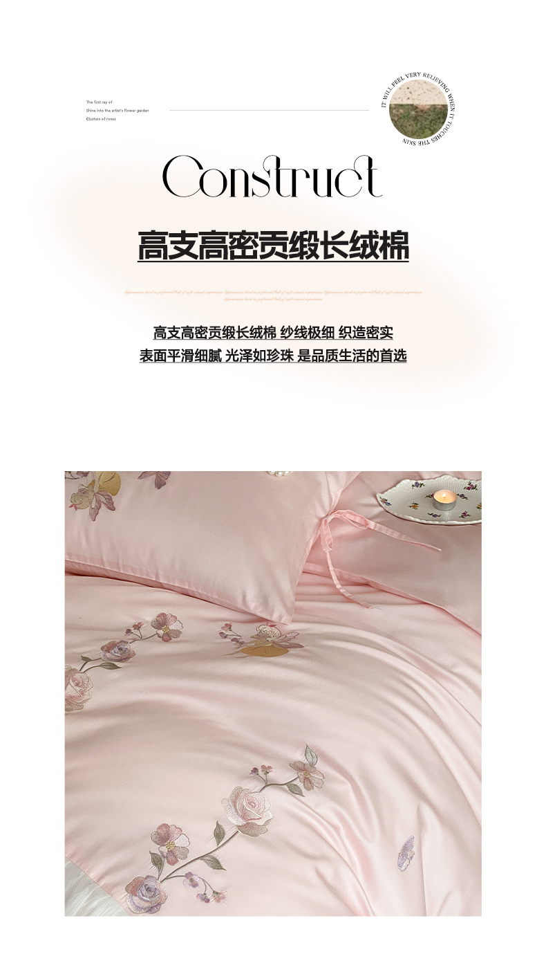 商品名称:树下 2026新款100支50S双股 刺绣A类高支高密贡缎长绒棉四件套-花信 花信粉