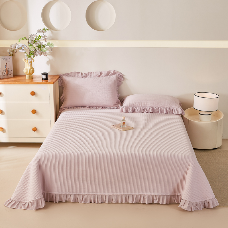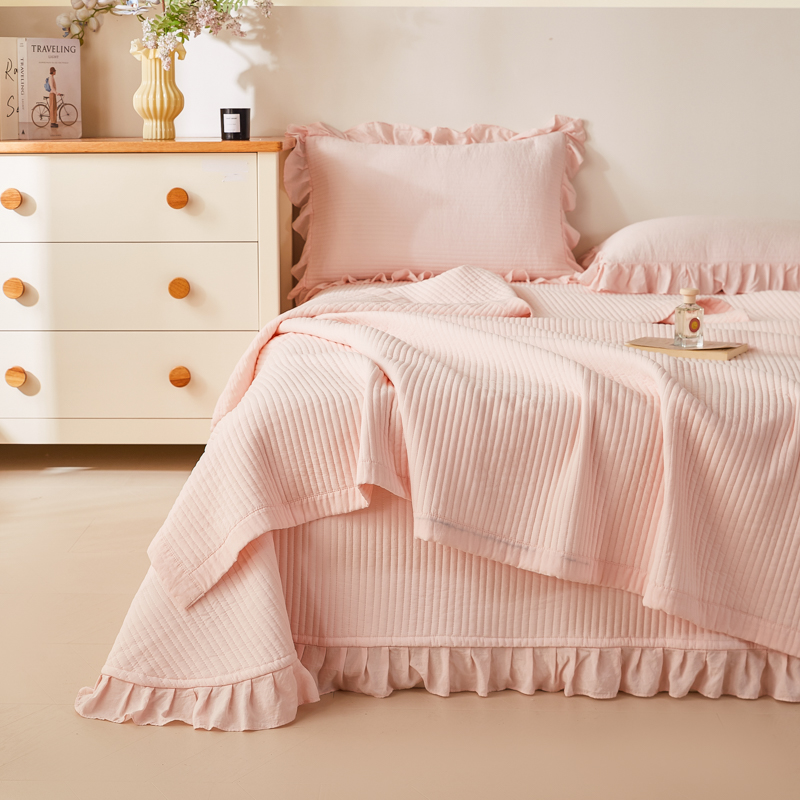 玖玖爱家纺 2026新款高端A类夹棉水洗母婴级莱赛尔天丝床盖裙边凉席三件套 枙子白
