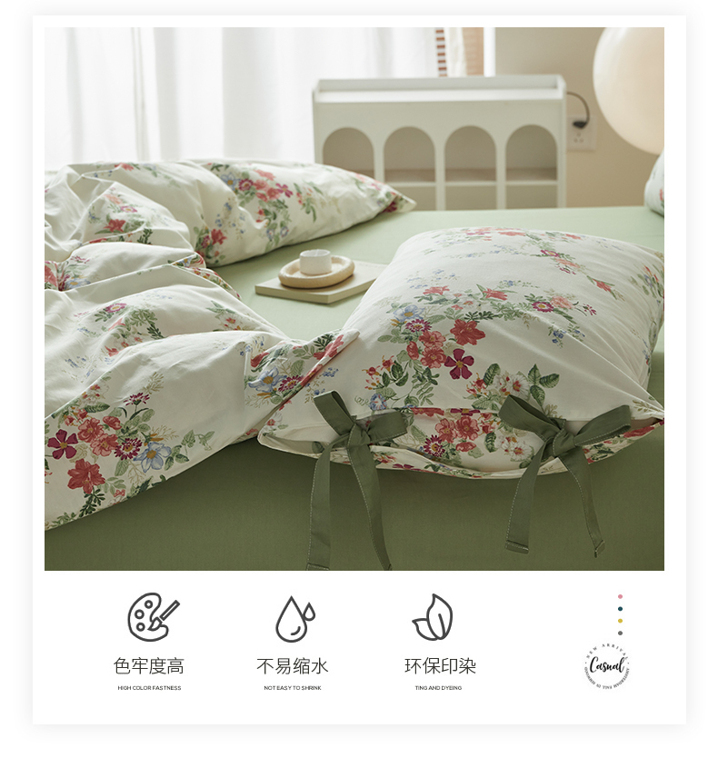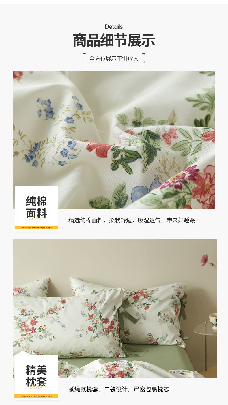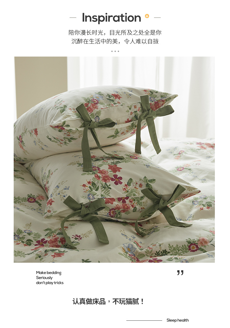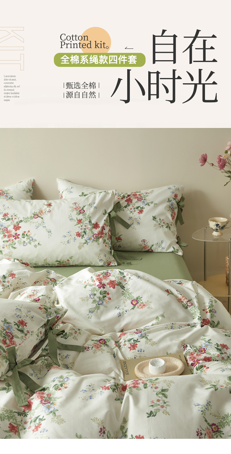 (总)绫韵家纺 2026春夏新款13372全棉ins小碎花纯棉田园风床单床笠四件套系绳蝴蝶结系列,贝贝利亚,沉香,丹恒,花田喜事