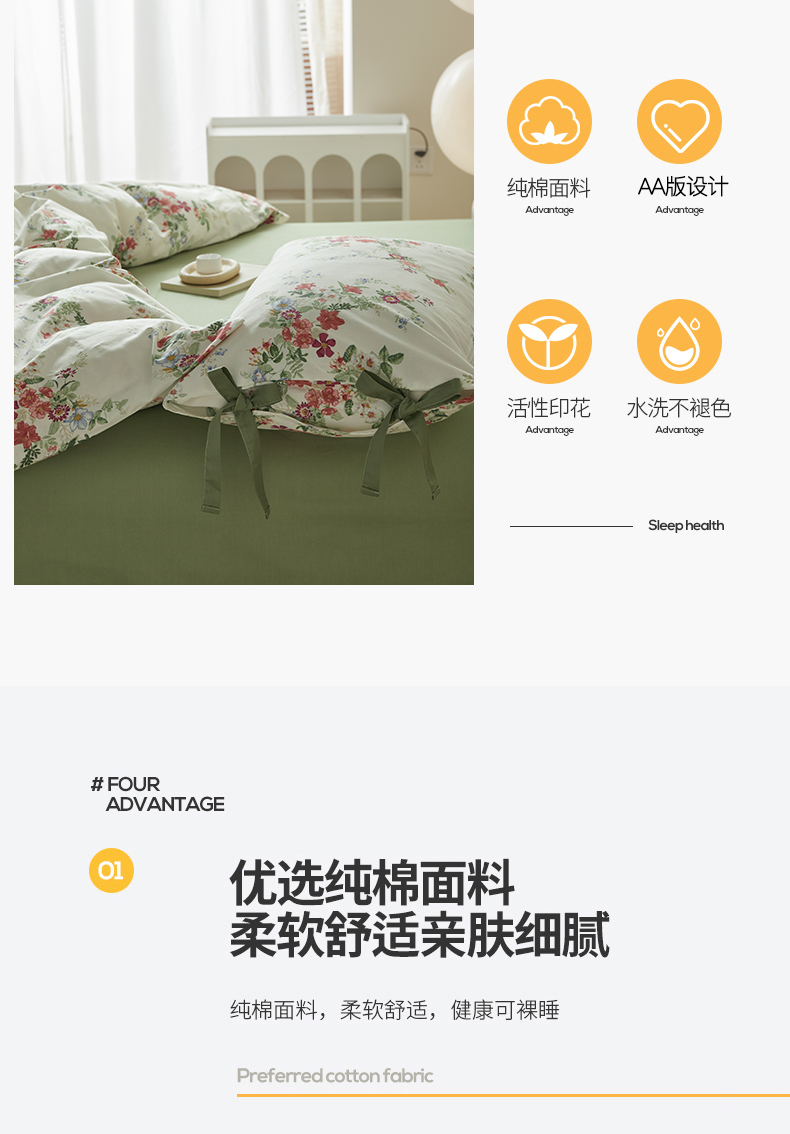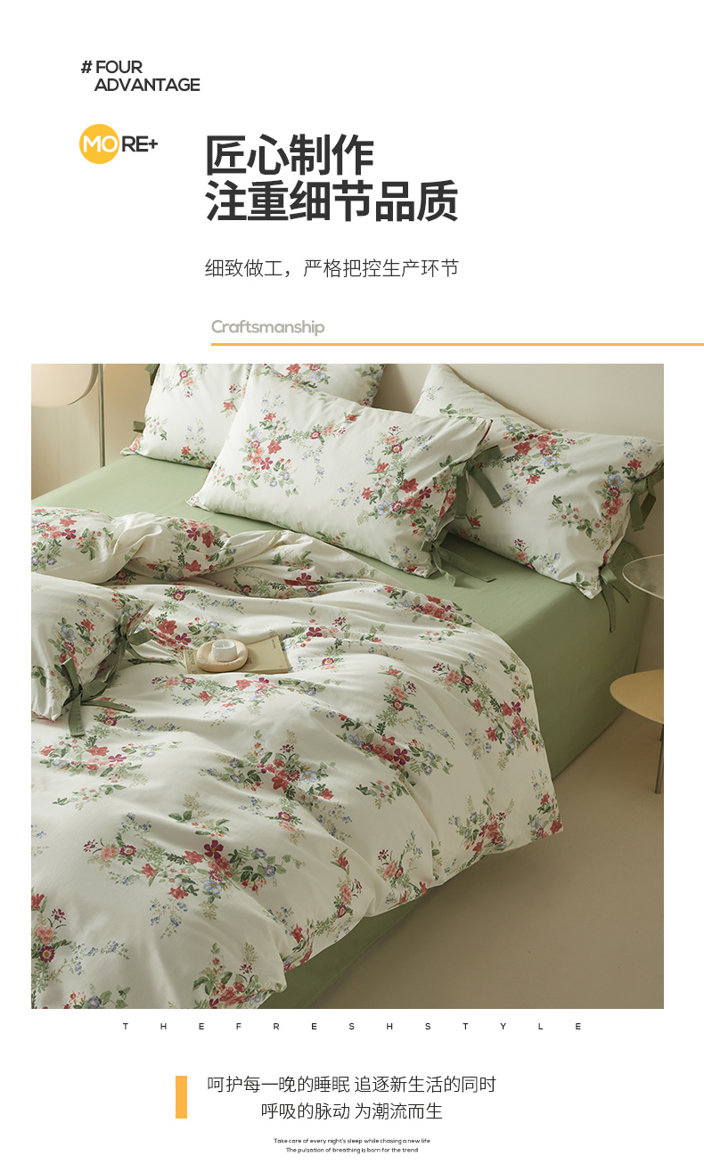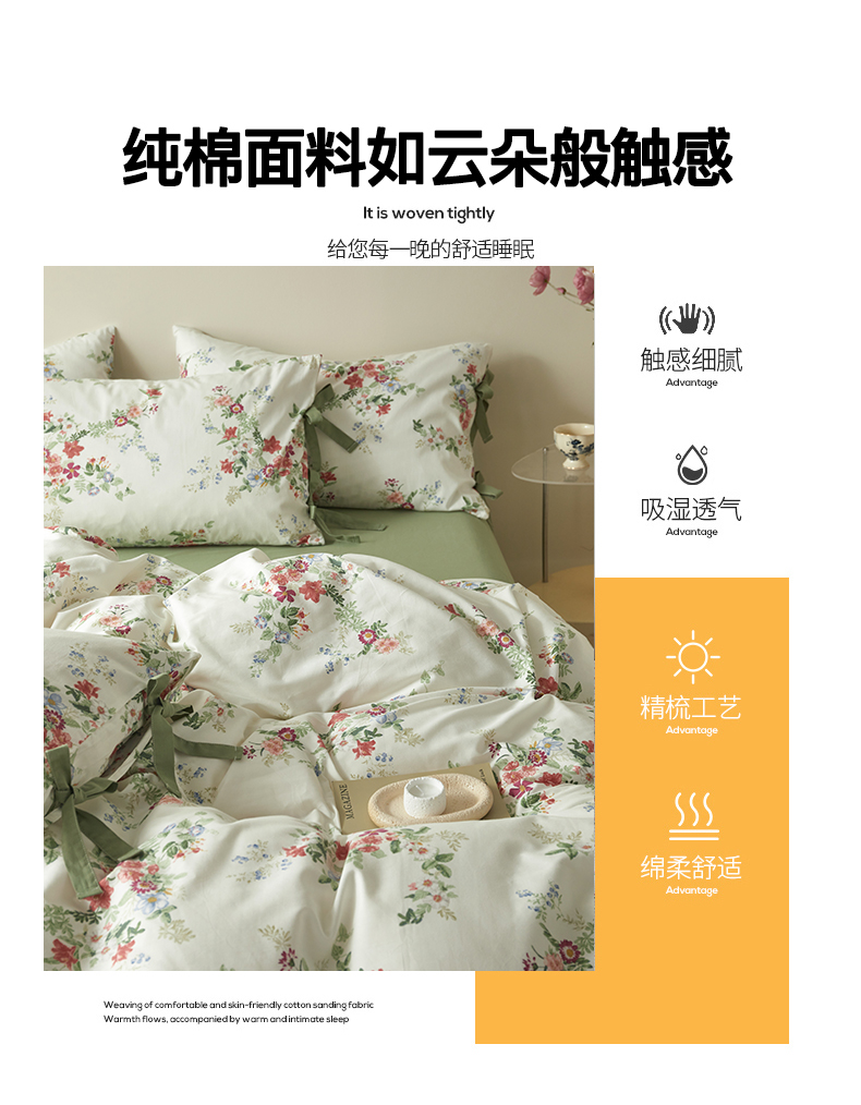 商品名称:绫韵家纺 2026新款春夏13372全棉蝴蝶结四件套系列 火花