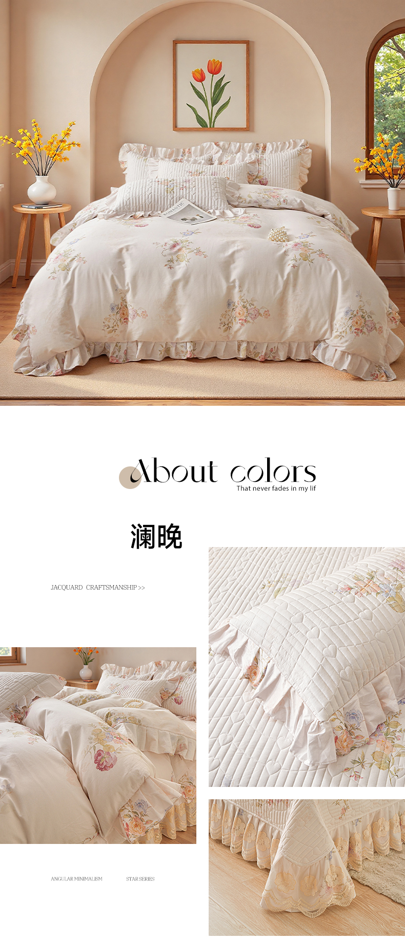 (总)宜凡家纺 2025新款全棉数码印花床裙三件套系列一,静若幽兰,浮云织梦,梦幻花园,陌上花开