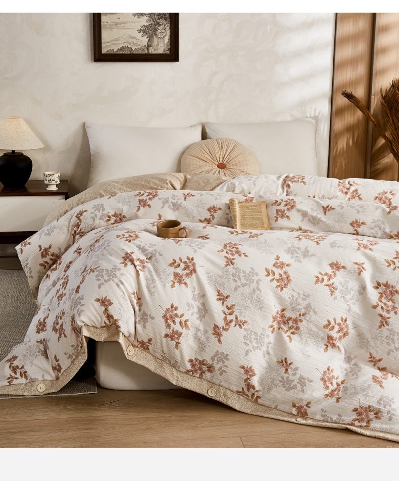 (总)梦舒羽 2026新款A类原麻纽扣加厚被套床单宿舍双人床仿亚麻被子