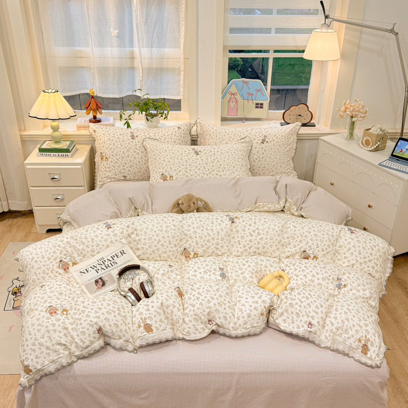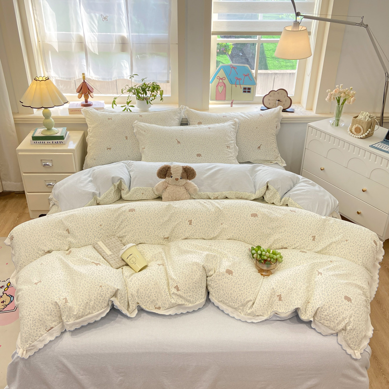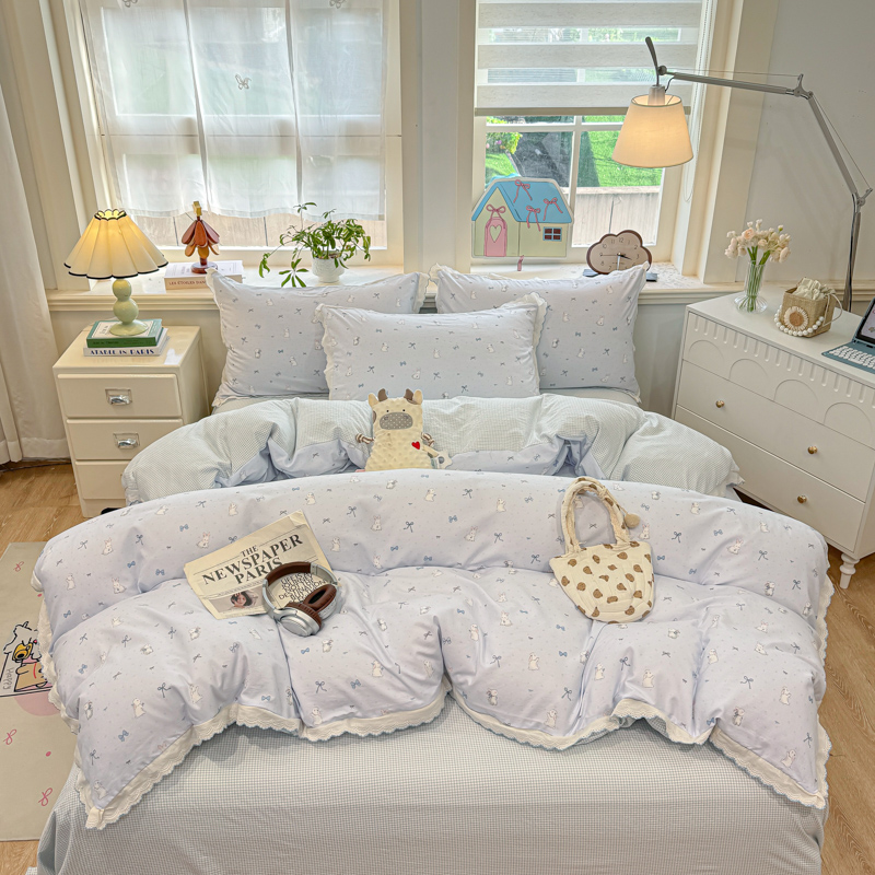 (总)漫仙阁家纺 2025新款蝴蝶结绑带款四件套-卡通系列,格子小狗,春日序曲,粉小兔,萌宠小狮子,裙子小兔,绅士小象-蓝,绅士小象-米黄,田园女孩,紫色小熊,欢乐小象