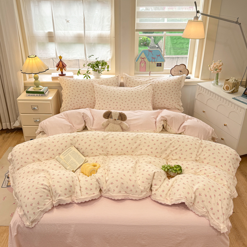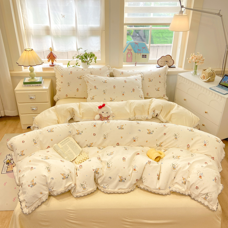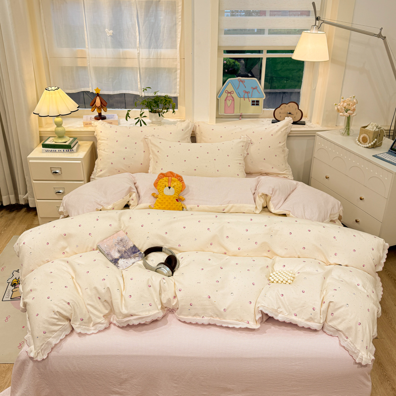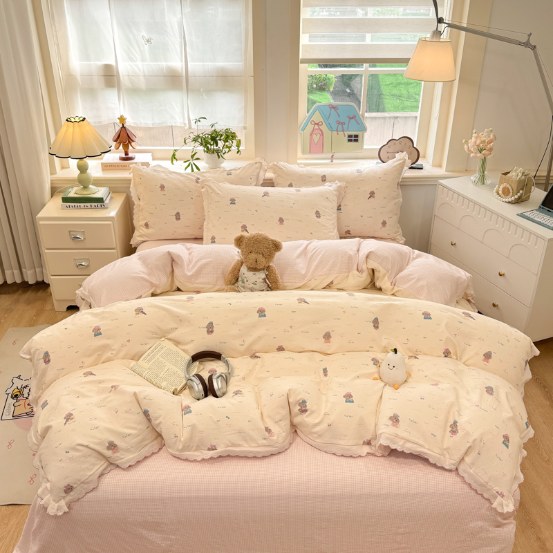 (总)漫仙阁家纺 2026新款纯棉学生宿舍A版100%新疆棉B版古法水洗三件套全棉四件套,草莓甜心,戚风浅夏,粉色蜜恋,哨兵熊,告白,奇遇记,星星人,酷迪,小木马,粉桃,朝花夕拾,礼物熊,抹茶花语,南瓜派对,奶酪狗